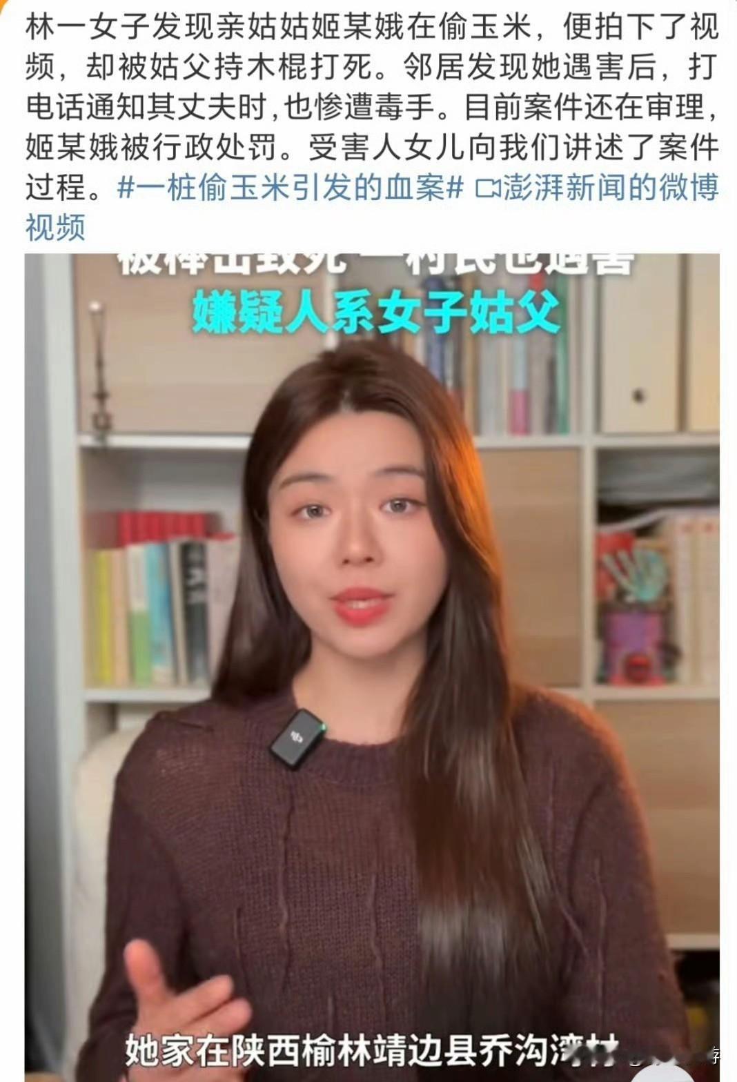 50多岁女子因发现70多岁姑姑偷玉米后,拍视频当作证据,却被姑父打死! 人心能坏到什么程度,是良善之人无法想象的。 想起我老家的村子里有一户人家就时不时地偷别人家的鸡,几十年如一日,也不是天天偷,就是隔段时间偷一只。 全村人都知道,但谁也不说破,我妈也只是私下里和我唠叨一下。 现在看来,我这些邻居做的很对,因为你不知道别人能恶到什么程度。 不过这个事情也给我们一个警示:揪着别人的错,尤其是小错不要过于纠结,是咱那时候还是需要放下,人生在世在处事之中,还是需要保护好自己!