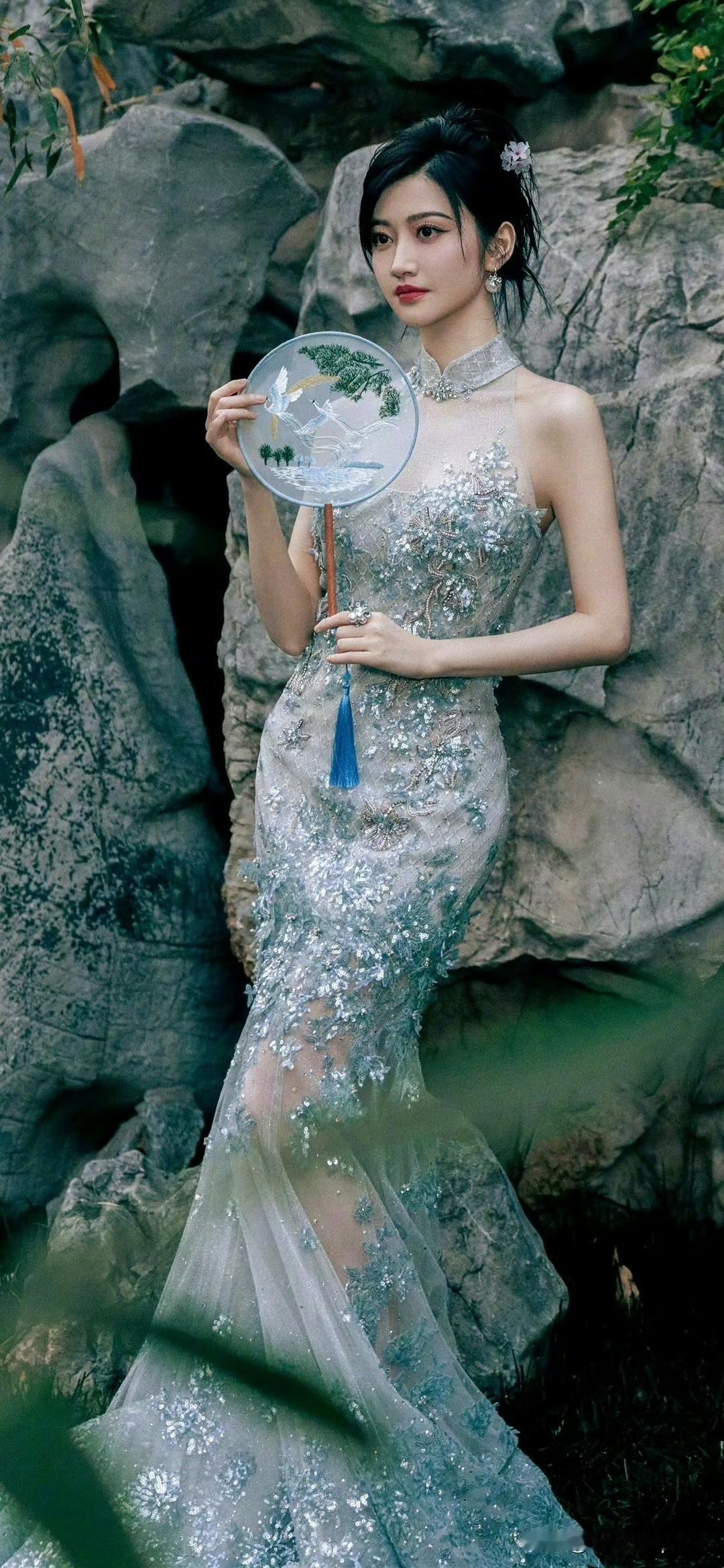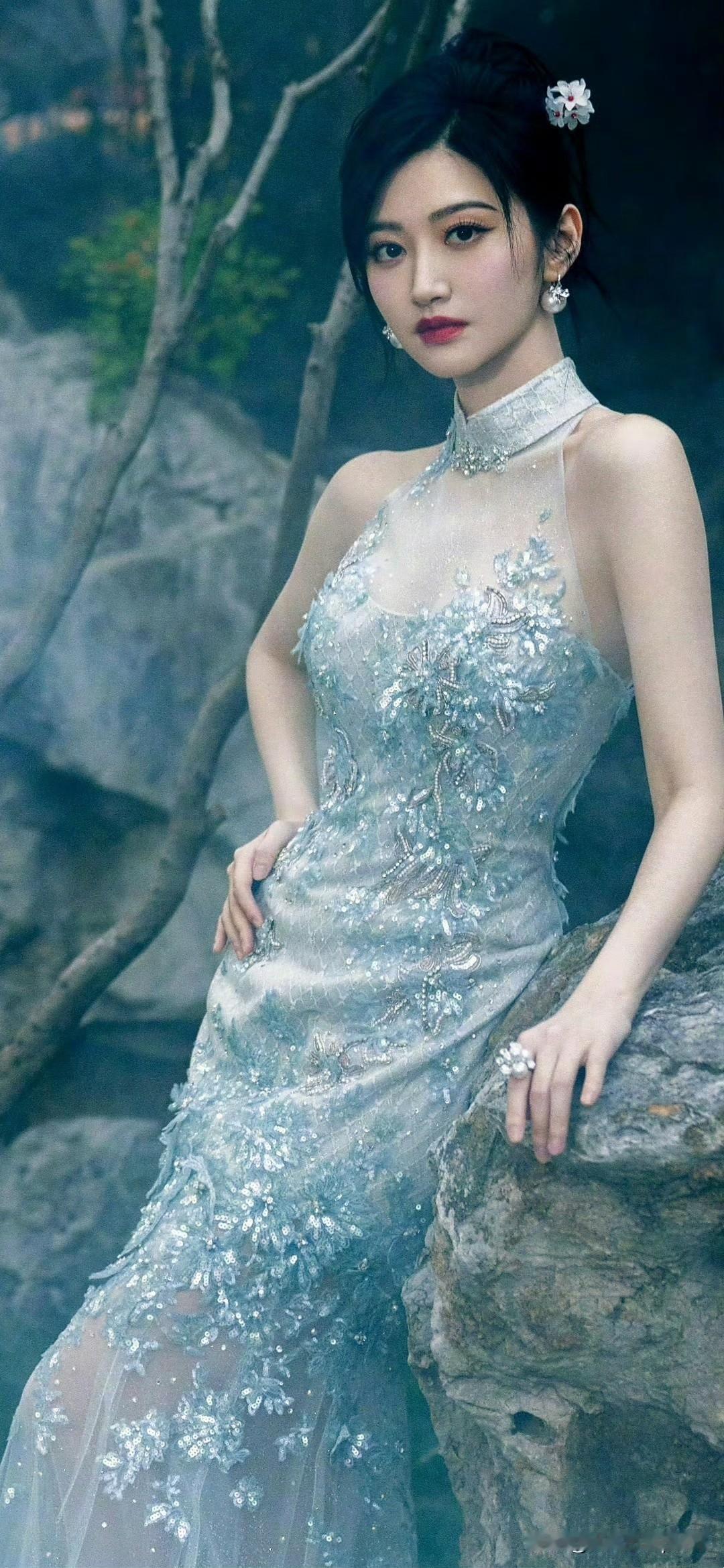 景甜这身蓝色蕾丝亮片改良旗袍造型也太绝了吧! 蓝色亮片和修身剪裁把她曼妙的身材曲线勾勒得恰到好处,走起路来肯定波光粼粼的~ 改良版旗袍既保留了东方韵味,又多了现代时髦感,配上她白皙皮肤和精致高盘发,整个人都在发光! 这种轻熟风果然是她拿手好戏,比传统旗袍更显灵动,每次穿都能美出新高度。 不得不说,景甜真的太会选造型了!
