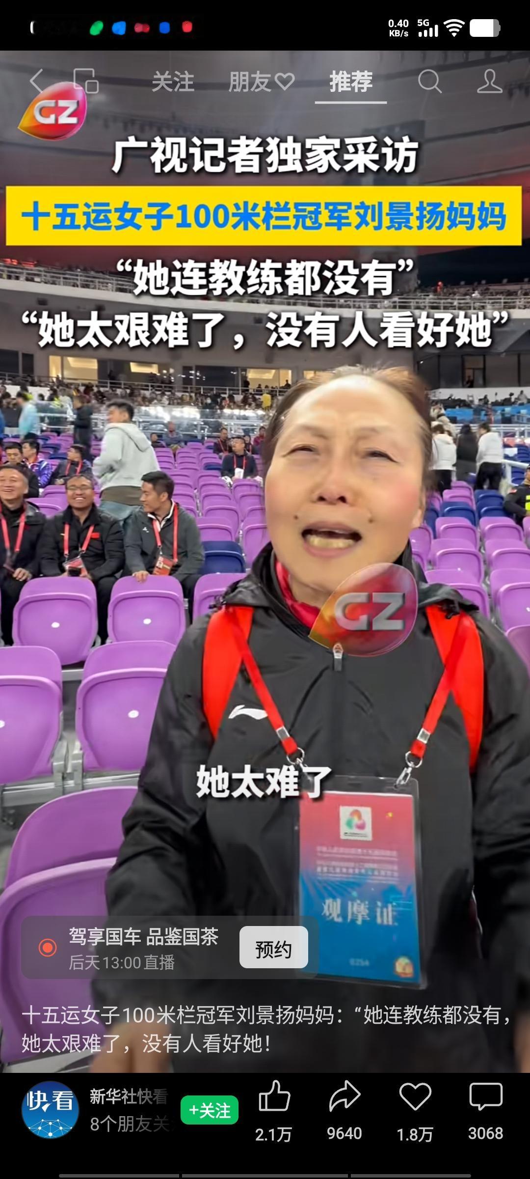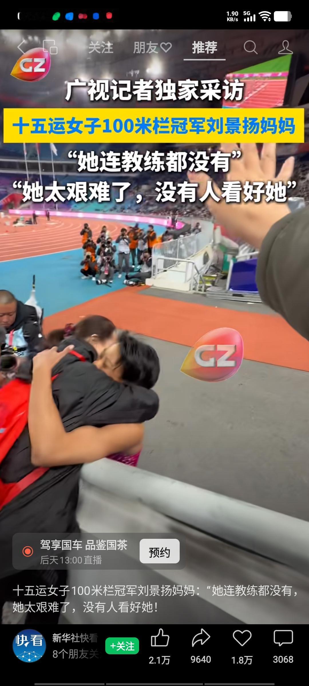 女子100米栏比赛中,刘景扬力压吴艳妮,勇夺冠军。赛后,她的妈妈兴奋不已,面对记者,激动地说道:“她是我的女儿,拿到冠军啦!她做到了!她太不容易了!你可知道她经历了多少?她连教练都没有,太难了!大家都不看好她,全靠她自己顽强的意志力,她太棒了!” 刘景扬夺冠后第一时间与妈妈拥抱,这一幕令人动容。一个没有教练指导、不被人看好的运动员,刘景扬凭借自身刻苦训练,最终达成目标,怎能不让人激动? 再看吴艳妮,描眉化妆,频繁在电视上做广告,所到之处都有粉丝追随,开跑前还搞些奇怪动作,装神弄鬼,与刘景扬的朴素形象形成了鲜明对比。看来饭圈文化不只是在乒乓球队存在,已经渗透到中国体育的各个领域,确实到了非整治不可的地步。