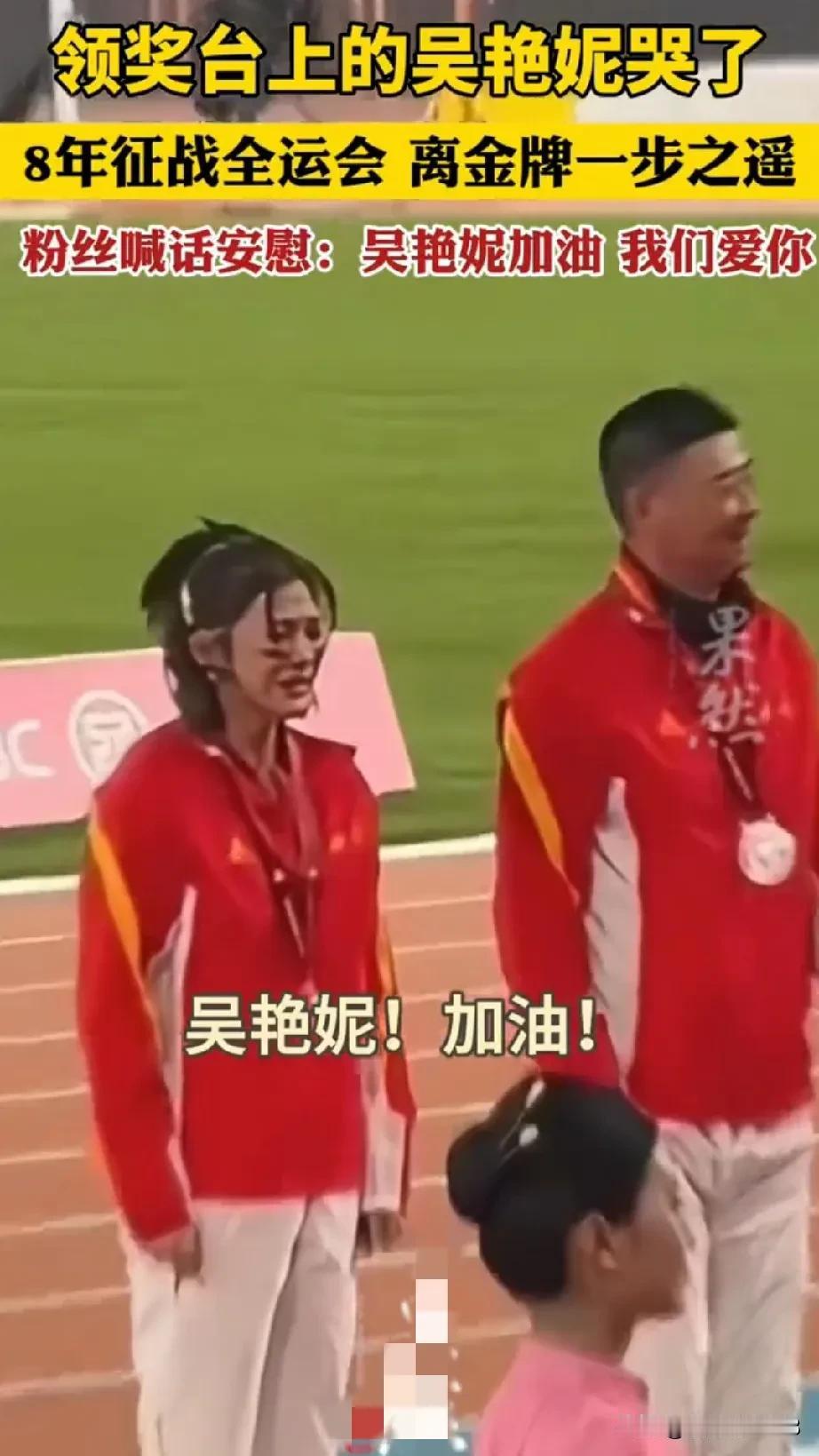 吴艳妮哭了 哭得梨花带雨,让人心怜。观众们都在喊, 吴艳妮我爱你, 吴艳妮,拿银牌,也是英雄 100米跨栏,只差一点点,冠军唾手可得 练了20年 全运会,折戟 伤心啊 但想一想其他的运动员, 有的可能练了50年,最后一张金牌也没得过 很多人都是陪练的 友谊比赛 重在参与,知足常乐 吴艳妮 吴艳妮写真 吴艳妮广告代言 鞍山吴艳妮 吴燕妮
