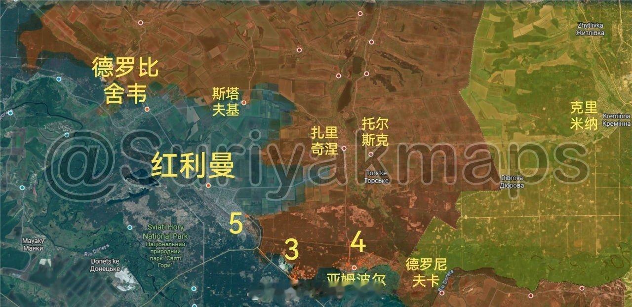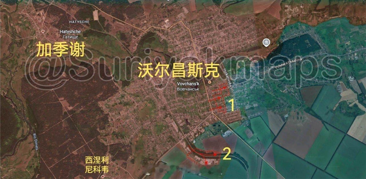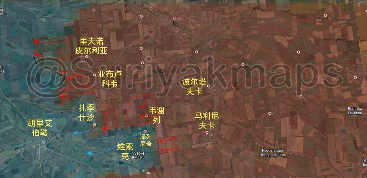 11月18日-19日俄乌最新战报: 1.红军村和季米特洛夫前线: (11月18日): ①俄军继续在红军村以西地区推进(图一)。 ②过去48小时里,俄军继续在季米特洛夫市南部和北部地区推进(图一)。 (11月19日): 俄军继续在红军村市北部和西北部郊区推进,并进入赫里什涅村以南的别墅区(图二)。 2.第聂伯罗彼得罗夫斯克州前线(11月18日): ①过去三天里,俄军继续在新帕夫利夫卡村内推进,越过索洛纳河,并占领了北岸的一些阵地,从而推进到了仓库附近(图三)。 ②继夺取丹尼利夫卡村后,俄军开始向涅恰伊夫卡村推进。他们在过去四天里占领了乌军主防线的新区域,并抵达该村北部郊区,目前战斗正在进行中(图四)。 3.扎波罗热州前线(11月18日): ①过去两天里,俄军完全控制了韦谢列村,并进入扎季什沙村,乌军开始从该村撤退,同时继续从泽列尼盖村撤退(俄军还占领了其东部的新阵地)(图五)。 ②俄军向亚布卢科韦村西南方向推进,试图绕过乌斯佩尼夫卡-胡里艾伯勒公路沿线的战壕(图五)。 ③此外,俄罗斯侦察破坏小组继续扩大在里夫诺皮尔利亚村以西地区的行动(图五)。 4.哈尔科夫州前线(11月19日): 过去48小时里,俄军继续在沃尔昌斯克市南部推进(图六1),同时占领了一家工厂,到达了维利恰村附近的战壕(图六2)。 5.红利曼及其方向前线(11月19日): ①俄军继续在亚姆波尔村西部的森林区推进,控制了靠近布拉基特内湖的新战壕(图七3)。 ②随着俄军沿北顿涅茨河推进,乌军已从亚姆波尔村撤离。这使得俄军能够进入该村北部地区,但由于该方向无人机活动频繁,向南推进仍面临困难(图七4)。 ③俄罗斯侦察破坏小组继续加强在红利曼市东部的行动(图七5)。