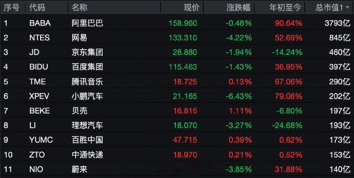 【】美东时间11月19日,美国三大股指集体收涨,标普500指数止住连续4日下跌态势。中概股下跌,纳斯达克中国金龙指数跌1.54%。个股方面,汽车股普跌,小鹏汽车跌6.43%,蔚来跌3.85%,理想汽车跌3.27%。另外,网易跌4.22%,哔哩哔哩跌3.49%,阿里巴巴跌0.48%。