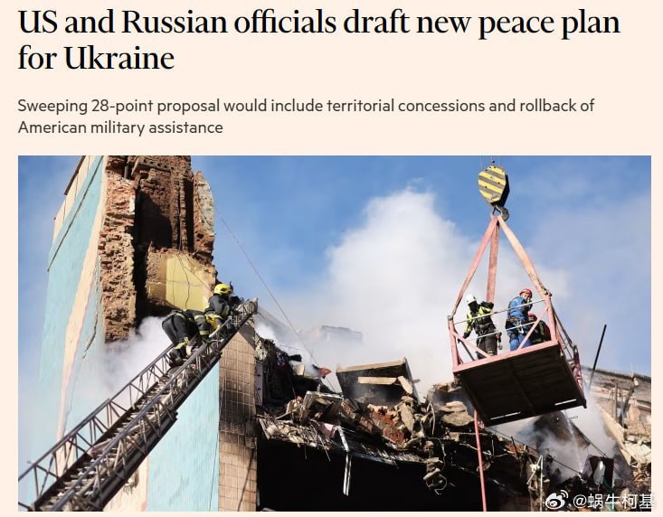美国的乌克兰和平计划新细节浮出水面▪️ 乌克兰武装部队减少60%(第一次披露是缩减一半)▪️ 乌克兰不得出现外国军队和飞机▪️ 割让整个顿巴斯▪️ 乌克兰放弃关键武器(包括能到达圣彼得堡和莫斯科的远程武器),并规定限制美国军事援助。▪️ 承认俄语为乌克兰的官方国家语言。▪️ 授予俄罗斯东正教会官方地位。▪️ 美国及其他国家将承认克里米亚和顿巴斯为俄罗斯合法领土,但乌克兰无需这样做。随后,乌克兰拒绝了美国的计划。 基辅官员表示,这完全符合克里姆林宫 的极端要求,除非做出重大改变,否则该协议不会在乌克兰实施 。来源:AXIOS、金融时报