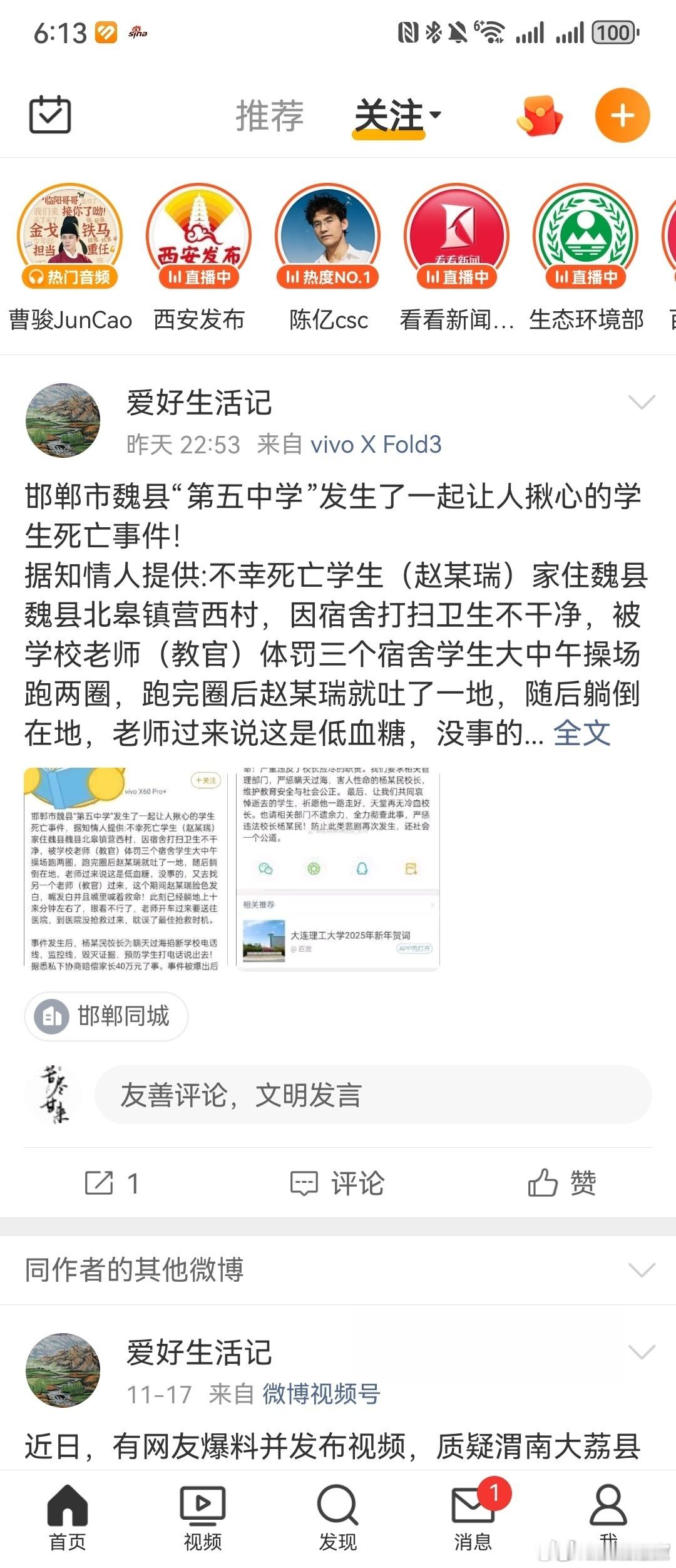 邯郸市魏县“第五中学”发生了一起让人揪心的学生死亡事件!据知情人提供:不幸死亡学生(赵某瑞)家住魏县魏县北皋镇营西村,因宿舍打扫卫生不干净,被学校老师(教官)体罚三个宿舍学生大中午操场跑两圈,跑完圈后赵某瑞就吐了一地,随后躺倒在地,老师过来说这是低血糖,没事的,又去找另一个老师(教官)过来,这个期间赵某瑞脸色发白,嘴发白并且嘴里喊着救命!此刻已经躺地上十来分钟左右了,眼看不行了,老师开车过来要送往医院,到医院没抢救过来,耽误了最佳抢救时机。事件发生后,杨某民校长为瞒天过海掐断学校电话线,监控线,毁灭证据,预防学生打电话说出去!据悉私下协商赔偿家长40万元了事。事件被爆出后引起了社会舆论的广泛关注和深刻反思。我们不能让类似的悲剧再次发生,必须追究责任,彻底查清事件原因。根据相关披露,学生死亡事件的发生与校长的管理和工作作风有关。教育部明文规定:禁止体罚学生!校方也没有按照规定及时联系家长和送医抢救。这种不负责任的态度极大伤害了家长的权益和学生性命!严重违反了校长应尽的职责。我们要求相关管理部门,严惩瞒天过海,害人性命的杨某民校长,维护教育安全与社会公正。 最后,让我们共同哀悼逝去的学生,祈愿他一路走好,天堂再无冷血校长。也请相关部门不遗余力,全力彻查此事,严惩违法校长杨某民!防止此类悲剧再次发生,还社会一个公道。