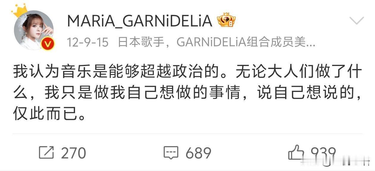 为美依礼芽的立场点赞! 日本歌手美依礼芽公开表态支持一个中国,说中国是她的第二故乡,中国朋友都是珍视的家人,这份真诚太圈粉了! 早在2012年,她就说过音乐能超越政治,一直坚持做自己想做的事、说想说的话。在敏感时刻敢亮明态度,真的很勇敢! 希望别因为某些风波影响到她,毕竟真诚无国界,这样温暖的音乐人值得被善待,为小美打call!