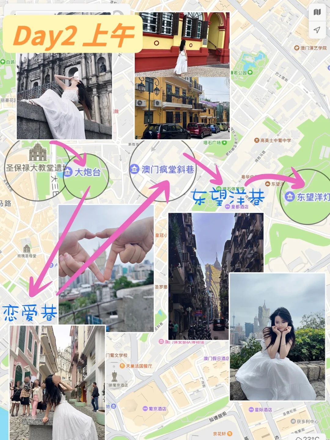 🔹上午:玫瑰堂——大三巴——大炮台——恋爱巷——疯堂斜巷——东望洋斜巷——东望洋炮台灯塔