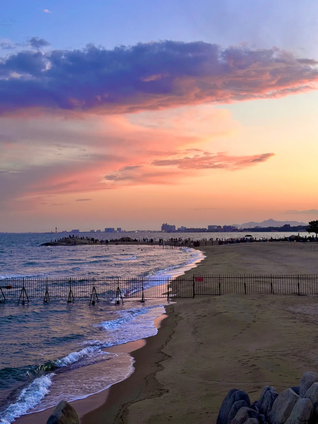 🔸老虎石:看日落,人很多,有很大一片海滩,夕阳的阳光洒落在海面波光粼粼的非常美!