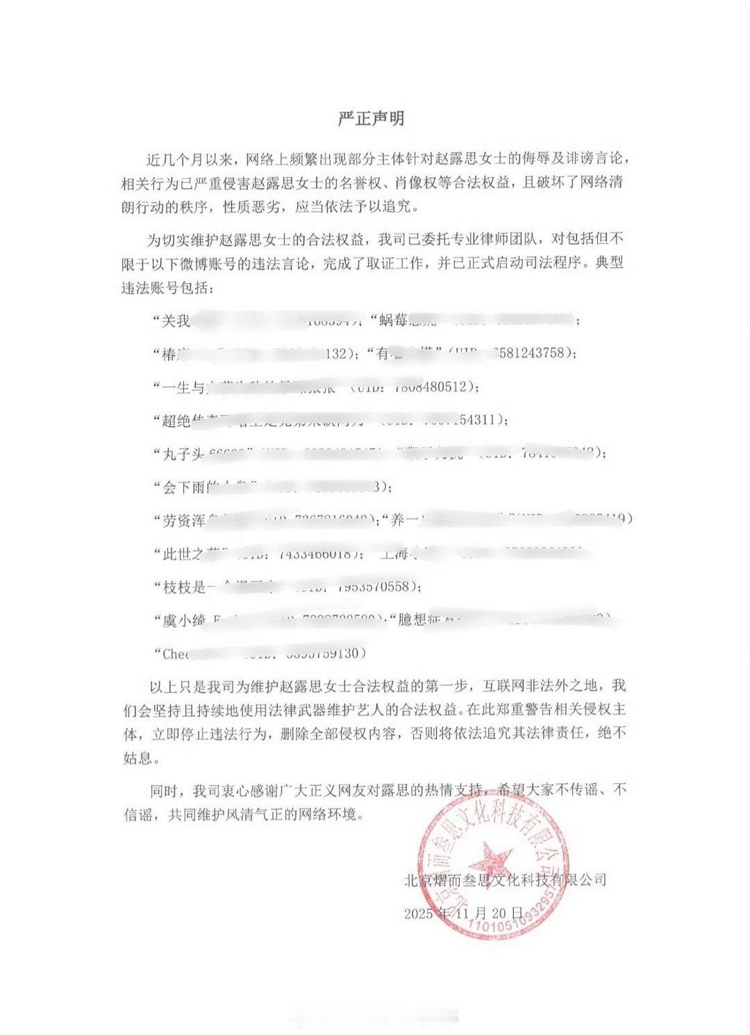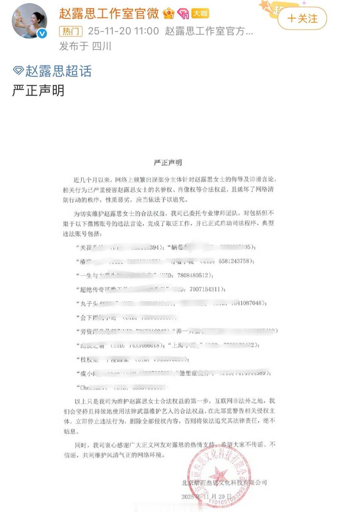 赵露思工作室发博告黑了,支持维权