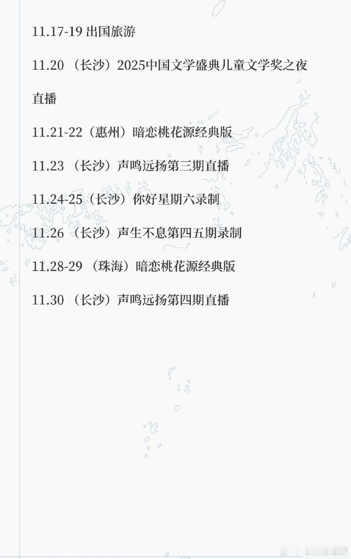 从乌镇的田园到剧场的舞台,从长沙的演播厅到珠海的剧院,51岁的何炅用脚步丈量热爱,每一次出发都值得期待。