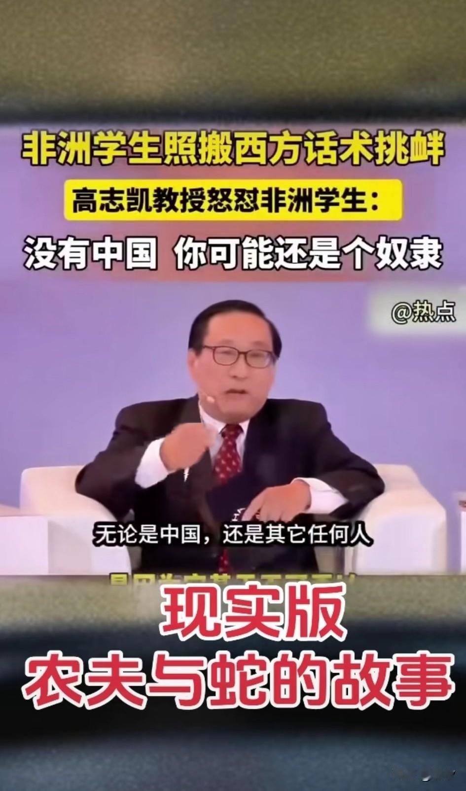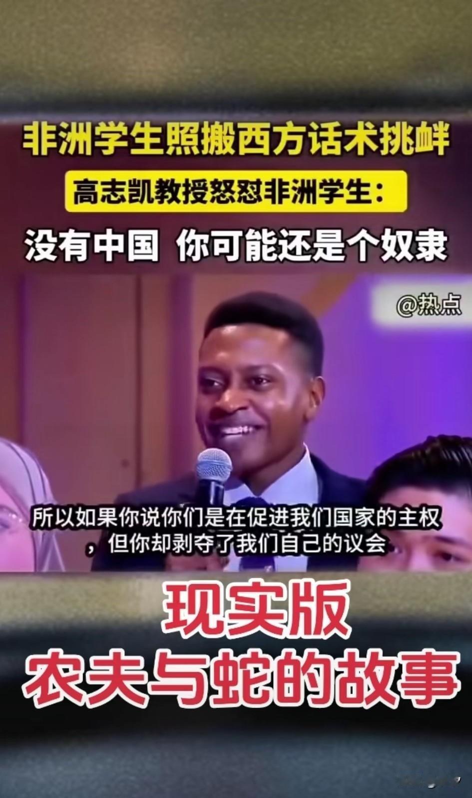 非洲学生照搬西方的话术, 居然在国内学术节目挑衅, 我们对于非洲国家的帮助可是实实在在,尊重他们的领土和主权, 也不干涉他们的内政, 还帮助他们大搞基础设施建设, 本来是想让他们生活的更加美好, 然而非洲的学生居然受到西方的蛊惑, 居然用西方那一套指责中国, 还真是现实版的农夫与蛇, 你想帮助人家, 人家却觉得你在控制人家的国家, 还真是自欺欺人, 这些接受西方国家的学生, 将来再进去非洲国家政府做事, 那就真的可怕了, 中国专家也是一点面子不给, 直接回怼没有中国, 你可能还是个奴隶, 这就是非洲学生的思维, 分不清楚好赖人! 大家对于非洲学生的话语怎么看? 非洲学生在中国 非洲学生来华 非洲来华留学生 非洲留学生政策 非洲大学校长