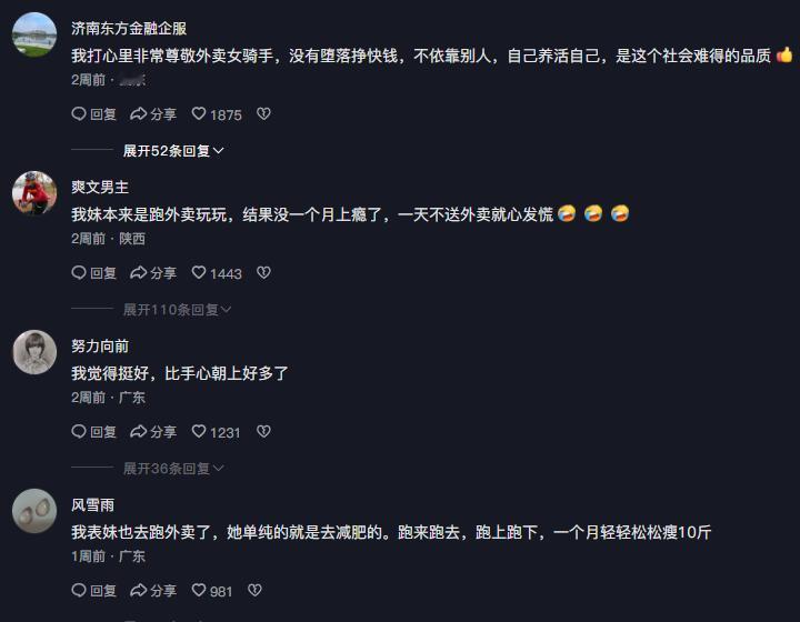 昨天一个朋友突然问我:"你有没有发现,现在女骑手越来越多了?"一想还真是,最近点外卖,确实经常看到女骑手的身影。 为什么是外卖?有人觉得这一行不适合女性,但答案可能让你意外,因为在当下的蓝领就业市场,送外卖是"性价比首选"。 对比一下就知道:超市收银月薪三千,饭店服务员包吃住但没社保,家政保姆时间不自由。 而一个熟练的女骑手,月入五六千很常见,更重要的是,时间完全自己掌握,早上送完孩子再上线,下午接孩子放学就收工,这种自由度在其他行业几乎找不到。 更关键的外卖员是保障升级了。昨天路过外卖柜,看到上面印着醒目的公告:全国骑手都能享受社保补贴。不少骑手边取餐边拍照查询,这个细节很暖心,把最重要的福利信息,放在骑手每天必经的地方。 像今年美团率先实现社保全国覆盖,养老保险补贴、工伤险、意外险这些最基本的保障,现在连兼职骑手都能享受。这意味着送外卖不再是青春饭,而是一份可以长期做的正当职业。 数据显示,目前全国已有超过70万女骑手,在县域市场这个增速更快。她们中有单亲妈妈,有二胎宝妈,也有不想被困在流水线上的年轻女孩。 所以,女性骑手增多不是偶然,当平台提供实实在在的保障,当工作模式真正尊重女性需求,这个行业自然成为理性选择。下次点外卖时,如果开门看到是女骑手,不妨多说声谢谢。她们不仅在送餐,更在用自己的方式,书写着这个时代女性的独立故事。