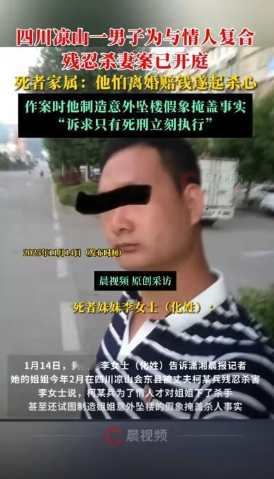 “太残忍了,必须死刑!”11月14日报道,四川凉山,丈夫为了和情 人复合,谎称屋顶漏水,在妻子俯身查看时,猛地将女子从屋顶推落。   四川凉山这起杀妻案,看得人浑身发冷,李某(化名)的家人现在只有一个要求,判凶手张某(化名)死刑,立即执行,他们实在没法接受,自己善良的女儿,竟然死在结婚多年的丈夫手里。   这事说起来让人愤怒,张某和李某结婚多年,后来在外有了情人,就想跟李某离婚,可李某没同意,为了能跟情人复合,张某竟然动了杀心。 那天,他跟李某说家里屋顶漏水,让她上屋顶看看,李某没多想,就顺着梯子爬了上去,可谁能想到,就在她俯身检查的时候,张某突然从后面把她往屋檐下推。   李某从高处摔下来,重重砸在地上,就算这样,她还有口气在,可张某一点没心软,捡起旁边的水泥砖,对着她的额头狠狠砸下去,直到李某没了呼吸。     之后张某还装模作样报警,说妻子是自己不小心摔下来的,可警方一查,现场有监控,清清楚楚拍下来他推人的全过程,铁证面前,张某一开始承认了自己推人,可到了法庭上,他又变卦了。   他说妻子是自己摔的,他没补砸水泥砖,还怪李某 “情绪不稳定” 才出的事,庭审的时候,他不仅反复翻供,甚至还敢顶撞审判长,一点悔意都没有。   李某的妹妹提起姐姐就哭,说姐姐对张某那么好,没想到他为了情人能下这么狠的手,家里人现在就盼着法律能严惩,要是判不了死刑,他们这辈子都没法安心。   懂法律的人都说,张某这行为太恶劣了,故意杀人,还在妻子有呼吸的时候补刀,完全没把人命当回事,就算现在一审判决还没出来,按他这情节,也该受最严厉的惩罚。   网友看到这事,也都气坏了,有人说,为了情人杀结发妻子,还这么残忍,必须判死刑,不然没法警示别人,还有人说,家庭暴力太可怕了,得加大打击力度,保护好受害者。     现在大家都在等最终判决,不管怎么样,张某这种视生命如草芥的行为,都不能被原谅,这案子也给所有人提了醒,婚姻里要是遇到极端的人,一定要保护好自己,别让悲剧发生。   希望法律能还李某一个公道,也让更多人知道,践踏生命底线,一定会付出代价。   对此,你还有什么看法呢? (信息来源 :潇湘晨报 晨视频 )