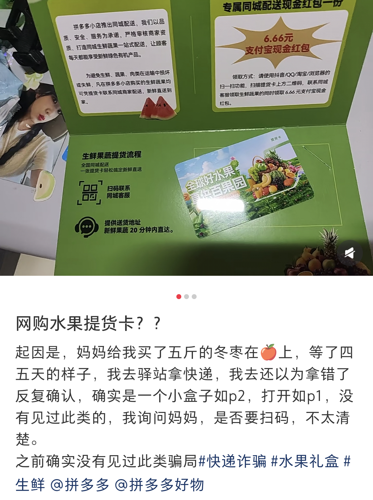 拼夕夕最近不要去买水果,警惕水果提货卡骗局