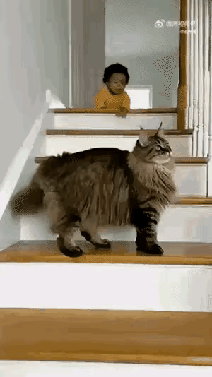 谁懂啊!猫咪护主这一刻真的封神,比不少人都讲义气! 小主人从楼梯