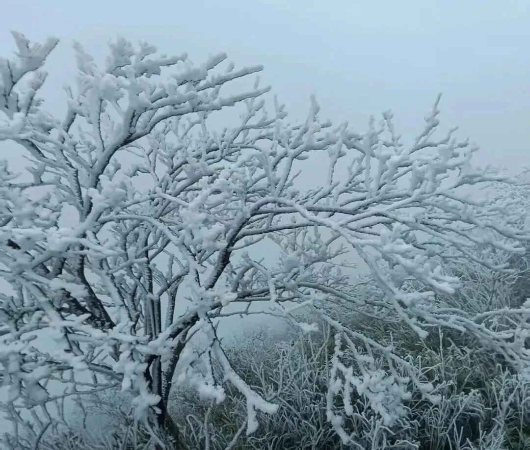 初雪映山❄️!大围山今冬第一场雾凇出现! ➡️当冷空气越过湘赣边界,海拔1607