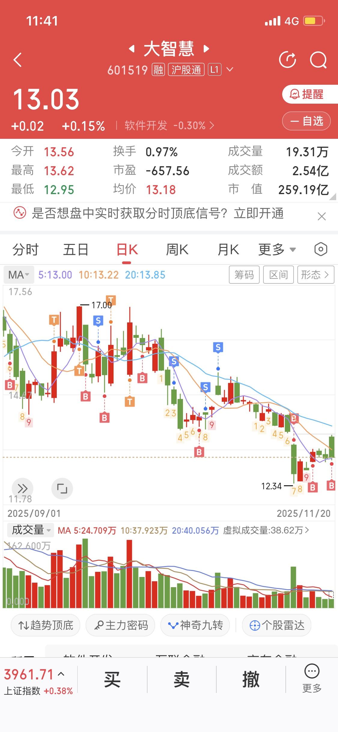11月20日大智慧早盘高开4个点,可到午盘就只涨0.3点。这走势完美诠释了大A祖训“高开即跑”。要是做T的话,早盘那4个点的高开,把握好了可就赚麻了。想想看,在高开时卖出,等价格回落再买回来,这差价不就稳稳到手了。 对比7月22日A股早盘深“V”走势,午前涨幅扩大,可银行股单边下挫。不同股票和板块走势差异巨大,在股市里还真得时刻盯着,瞅准时机操作,不然像大智慧这种高开低走,没及时跑就亏大了。