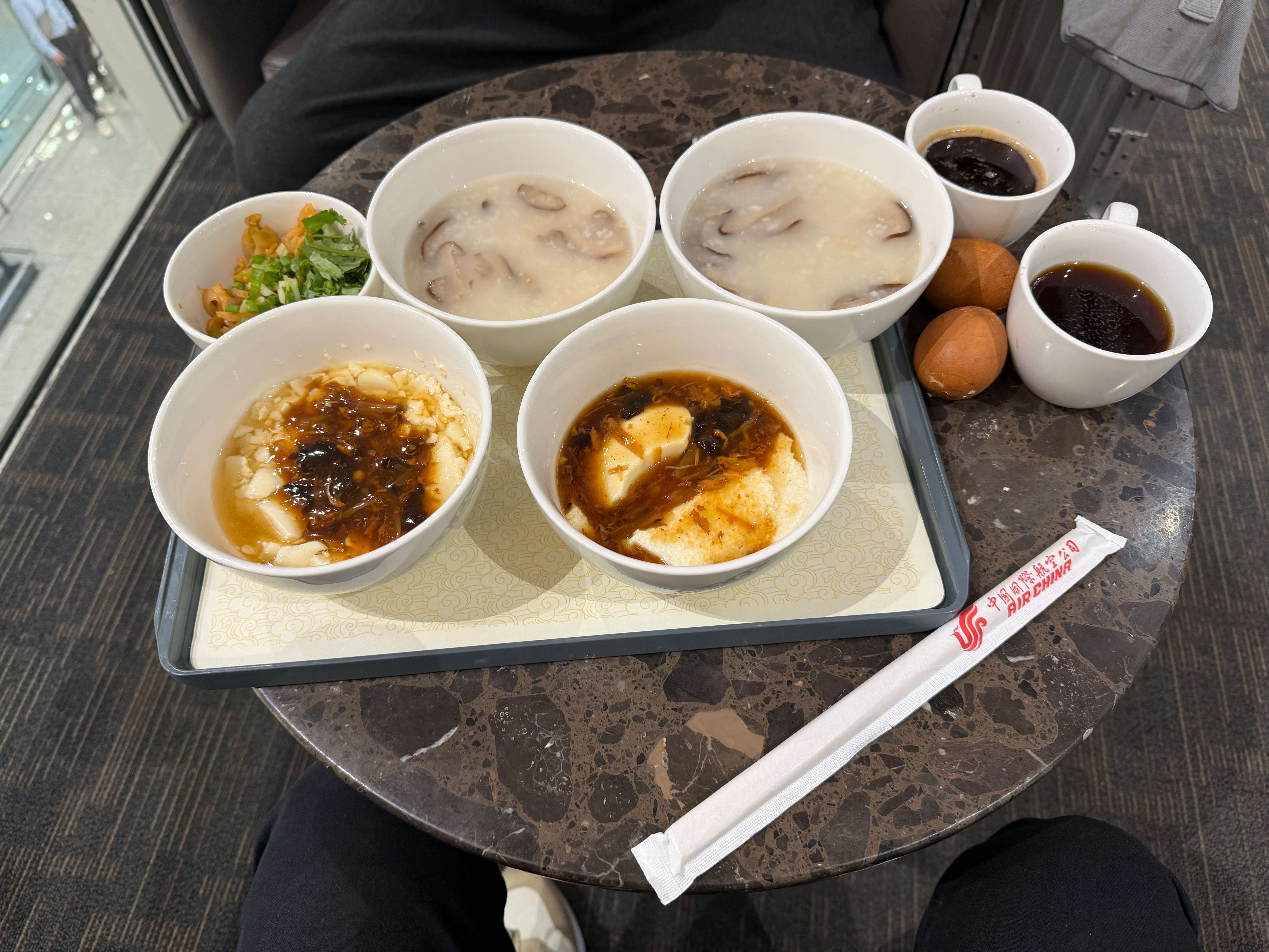 国航休息室实在没啥吃的,咸口豆腐脑相当不习惯,不过味道是可以的。最近似乎流感又多