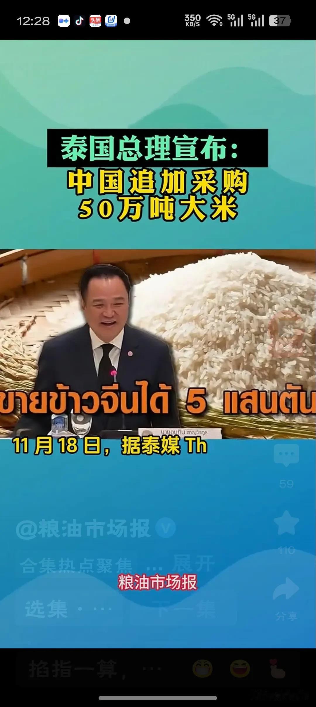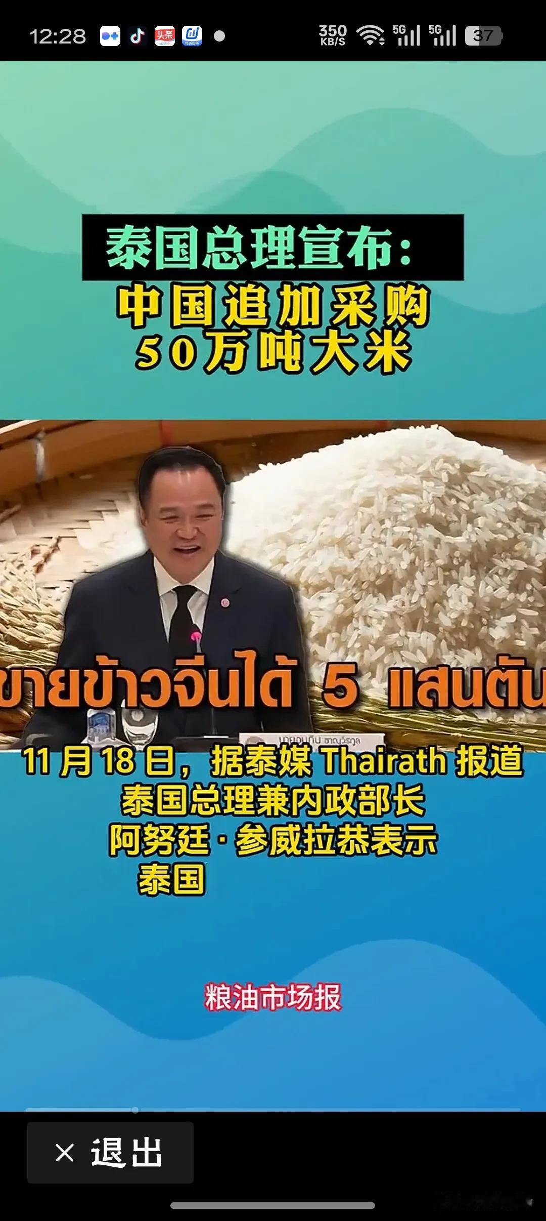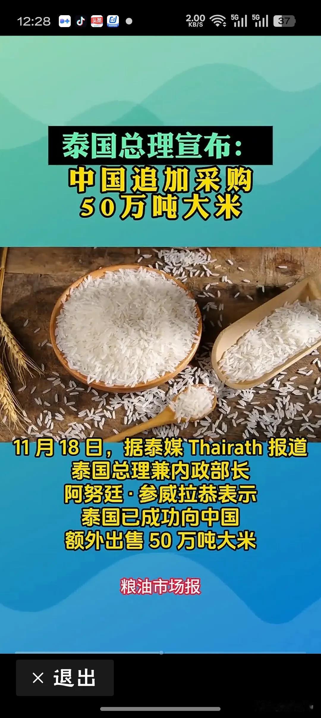 泰国称中国追加50万吨大米采购订单中泰“米”约再续,50万吨新单香飘两国,友谊饭碗越端越稳!