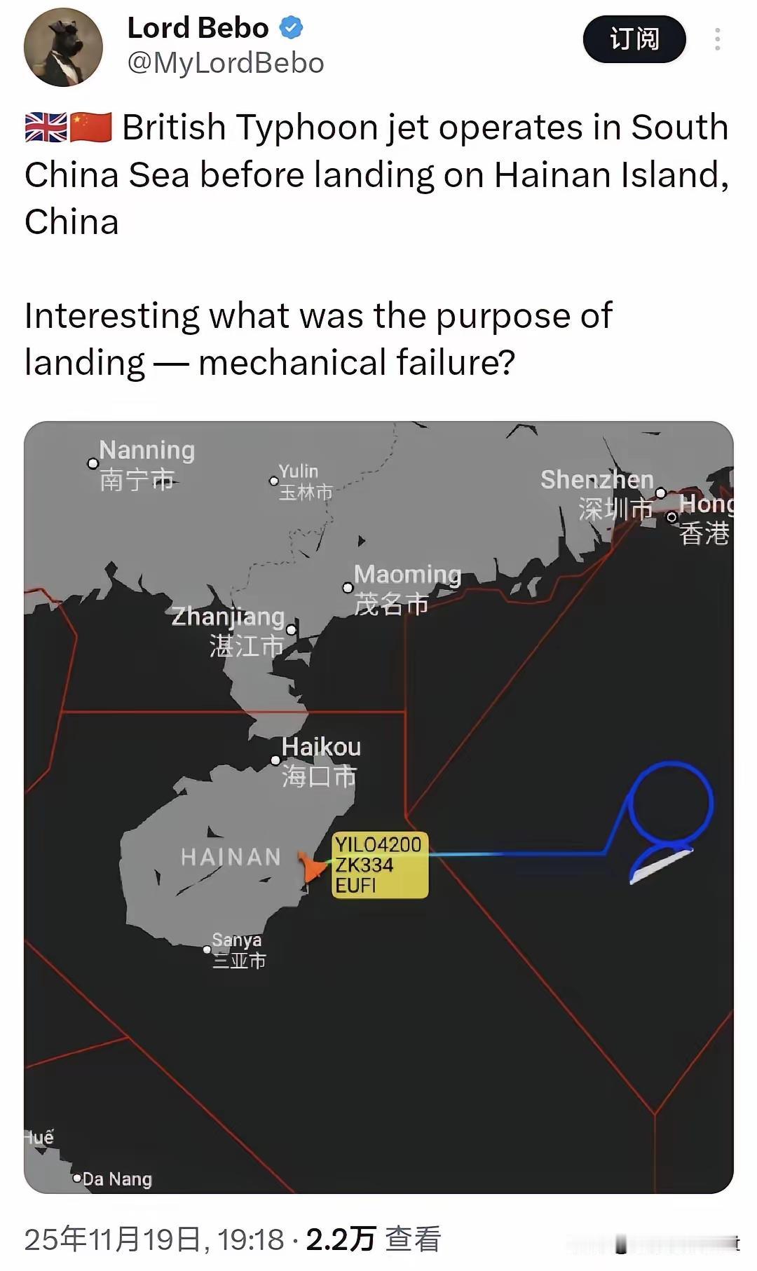 英国皇家空军的一架台风战机,迫降海南机场!它来干什么来了?