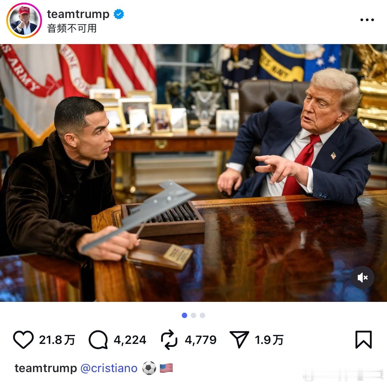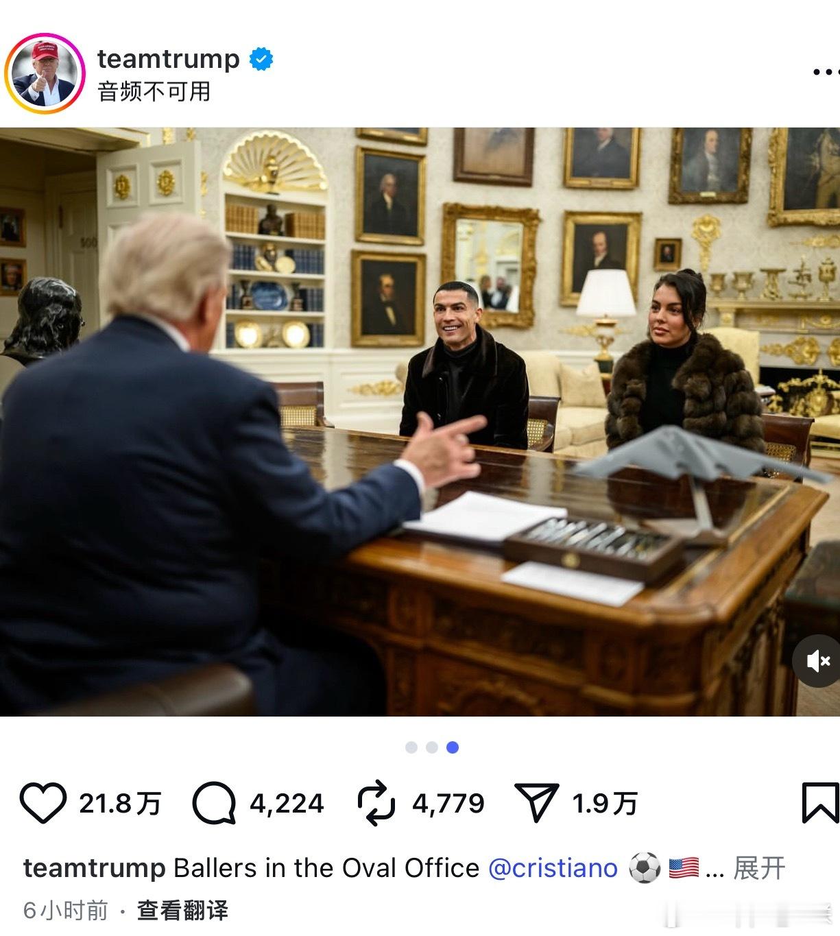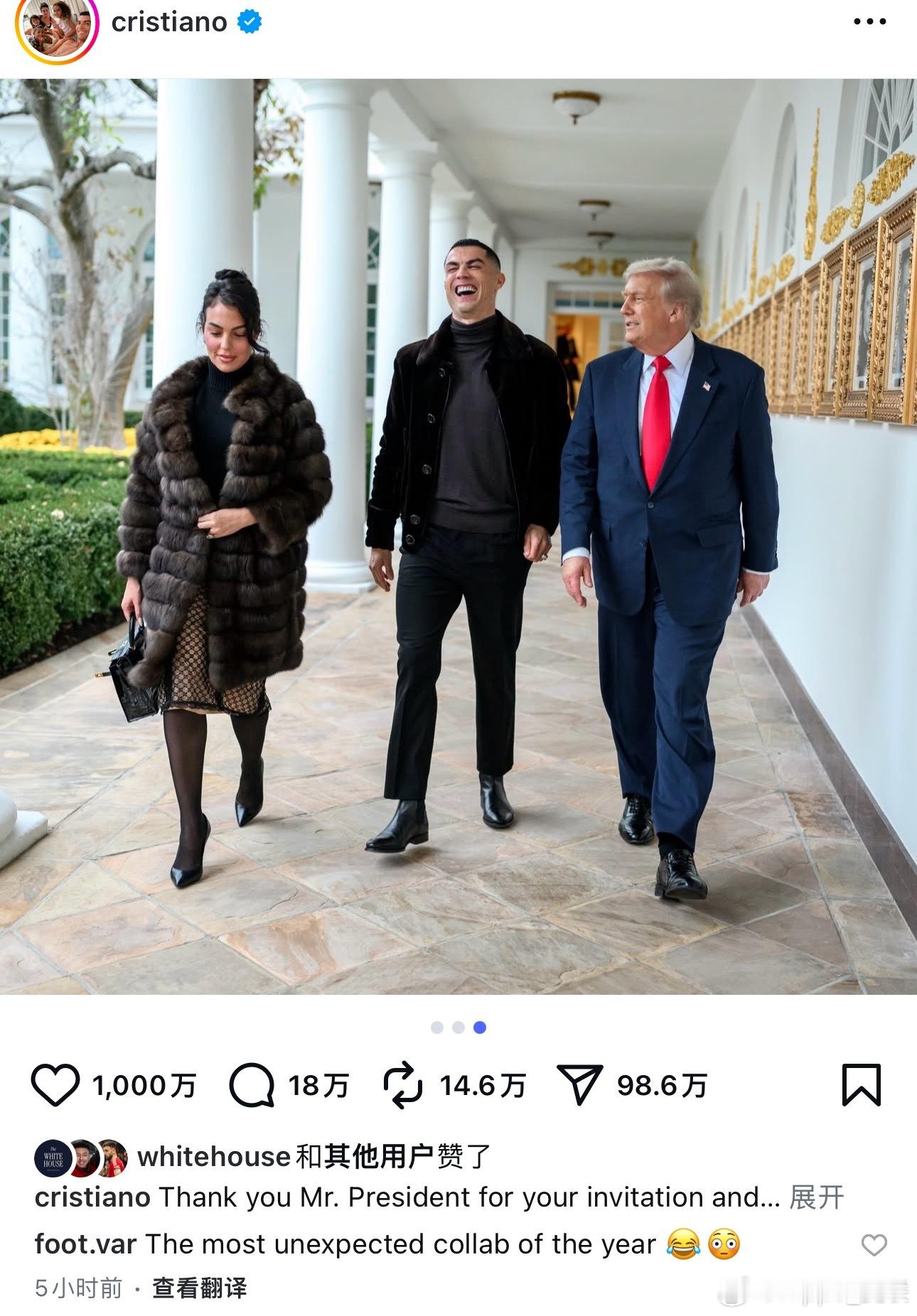 我觉得最难能可贵的是,C罗居然带了女朋友去见特朗普,也能带,这个待遇比较少见。图一这个角度上一次川儿和棒球goat大谷翔平拍也用过,一模一样,但没说能带外人的。 and图四也很有意思,c罗中间站。