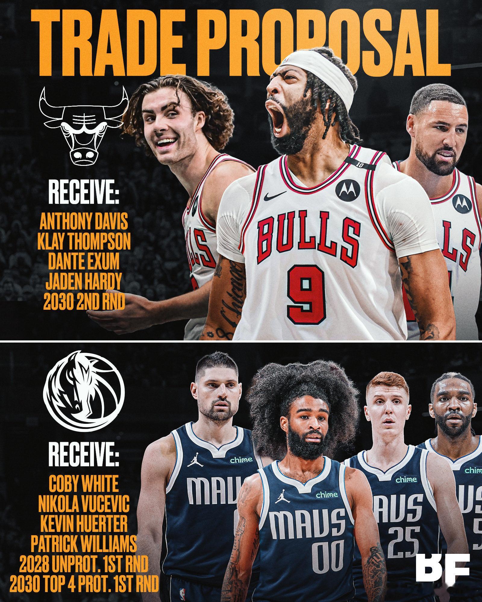 《体育画报》模拟独行侠公牛交易——公牛得到浓眉、汤普森和埃克萨姆。独行侠获得了急需的选秀权,以及武切维奇、赫尔特和科比怀特(他们的合同也都即将到期)。