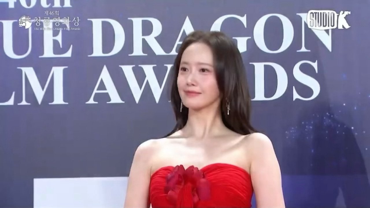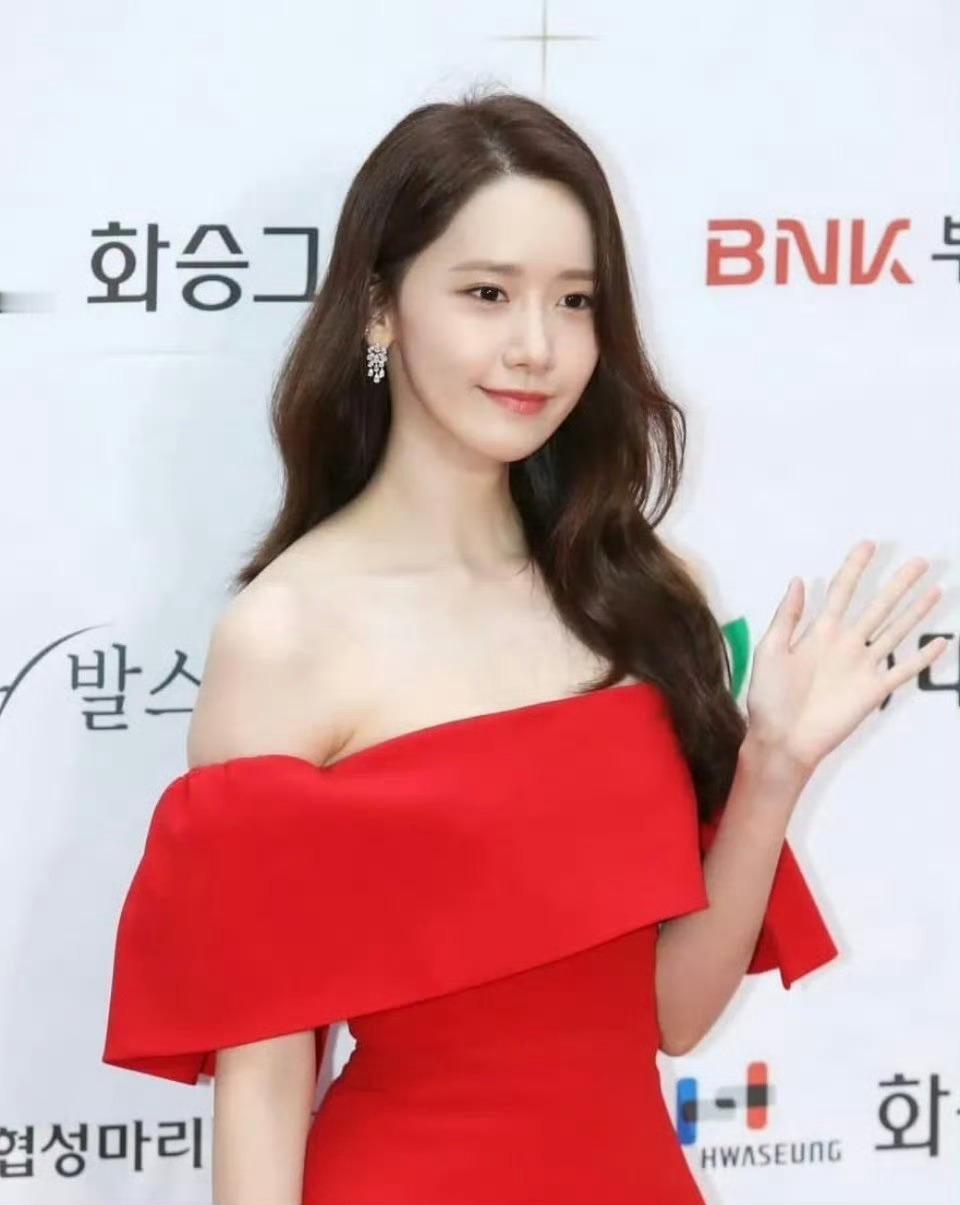 林允儿抹胸红裙太美了,红毯上像盛放的红玫瑰