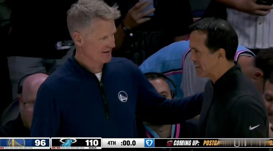 尊重!现役最好的两位主教练拥抱致意! 今天,热火队主场以110-96大胜勇士队,送后者两连败。比赛结束后,斯波尔斯特拉和科尔都没有赢球的兴奋或输球的难过,两人第一时间上前握手拥抱,细聊许久。 科尔和斯波尔斯特拉是现役联盟最好的两位主教练,他们都入选了NBA历史15大主教练,这项荣誉有着非常高的含金量。两人也一直互相尊重,惺惺相惜。