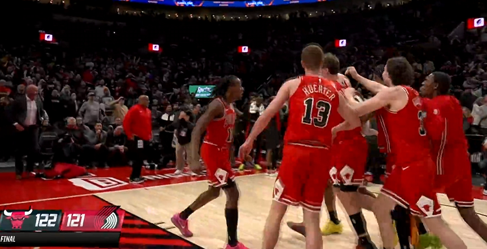 武切维奇三分压哨绝杀,公牛122-121战胜开拓者!杨瀚森替补上场8分钟得到2分2篮板1助攻。
