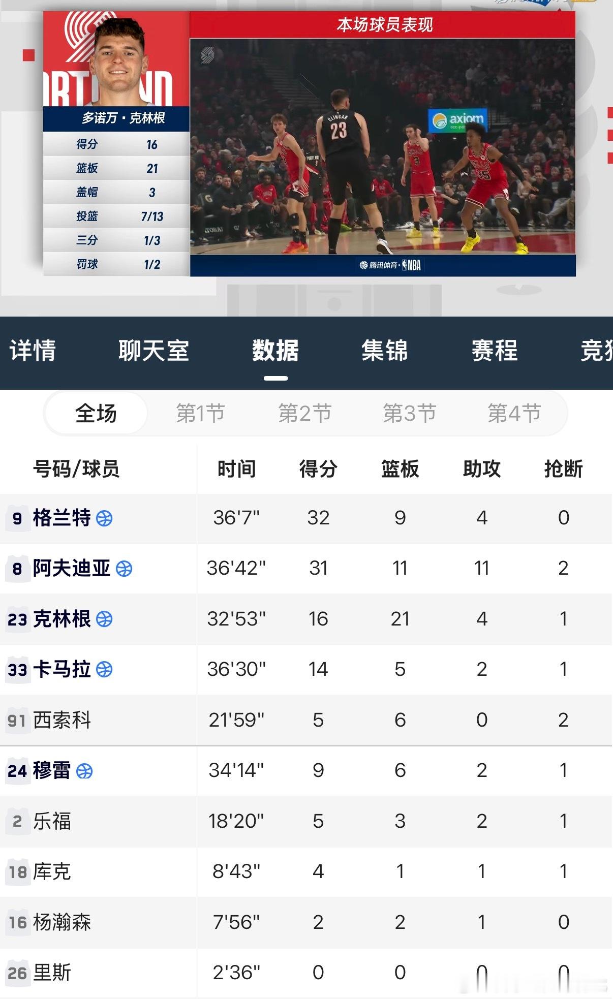 21个篮板球!!克林根值得小杨学习