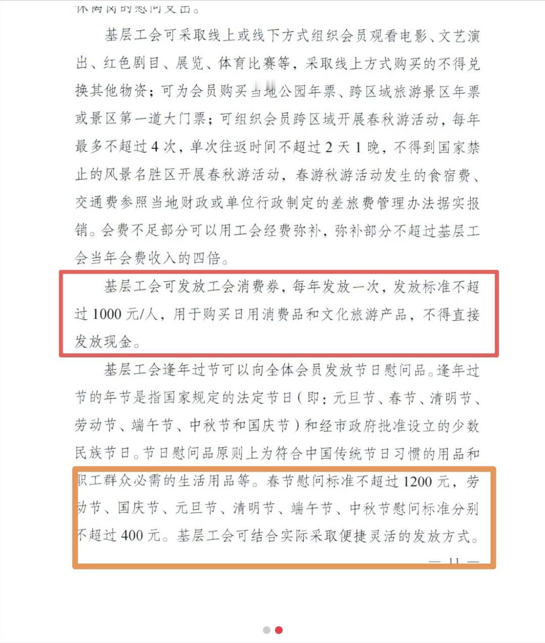 重庆的工会福利,这回怕是真冲到全国天花板了,直接把江浙沪都比了下去。 最近,重庆工会发布了新文件:除了原本每年3600元的节假日福利之外,2025年起,还要再发1000元消费券给会员。这不,渝某区某单位的1000元购物卡已经到位了。 文件也强调要“堵后门、开前门”——该发的福利一分不能少,但不能违规多发一笔,否则面临清退和问责。从规范治理的角度看,确实值得点赞。 事实上,绝大多数央国企和机关事业单位的工会,福利远不止这些——还包括父母医疗、家庭旅游、话费补贴、服装、生活用品……几乎涵盖生活的方方面面。只不过这些福利很少被拿到网上讨论。 不过,对于绝大多数普通企业的员工,基本福利落实是最重要的。“工会会员福利”,在现实中怎么执行落实才是重点。 每年4600元的福利,听起来很美,希望能惠及更多人。 你们单位的工会福利怎么样?欢迎在评论区聊一聊。