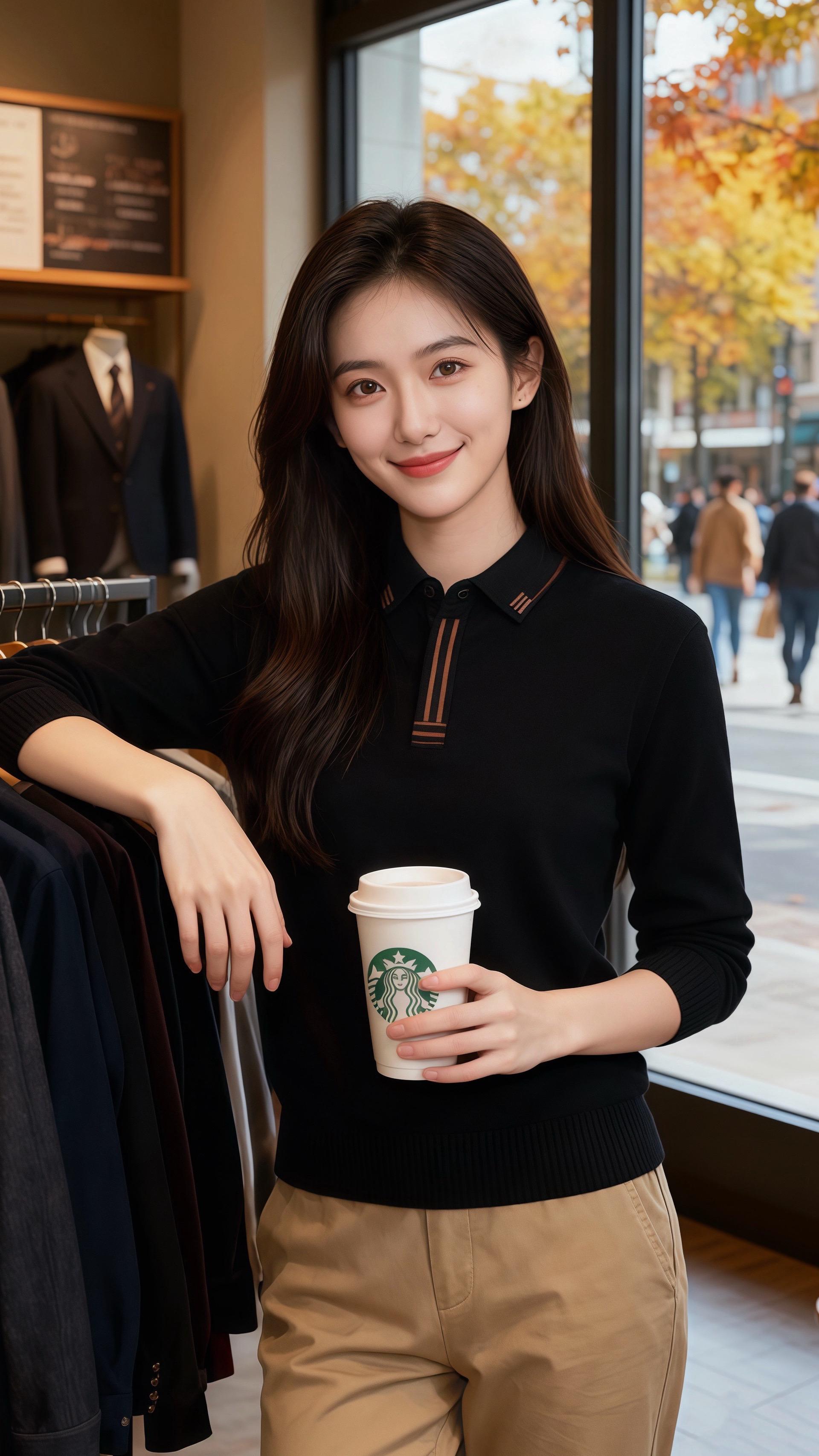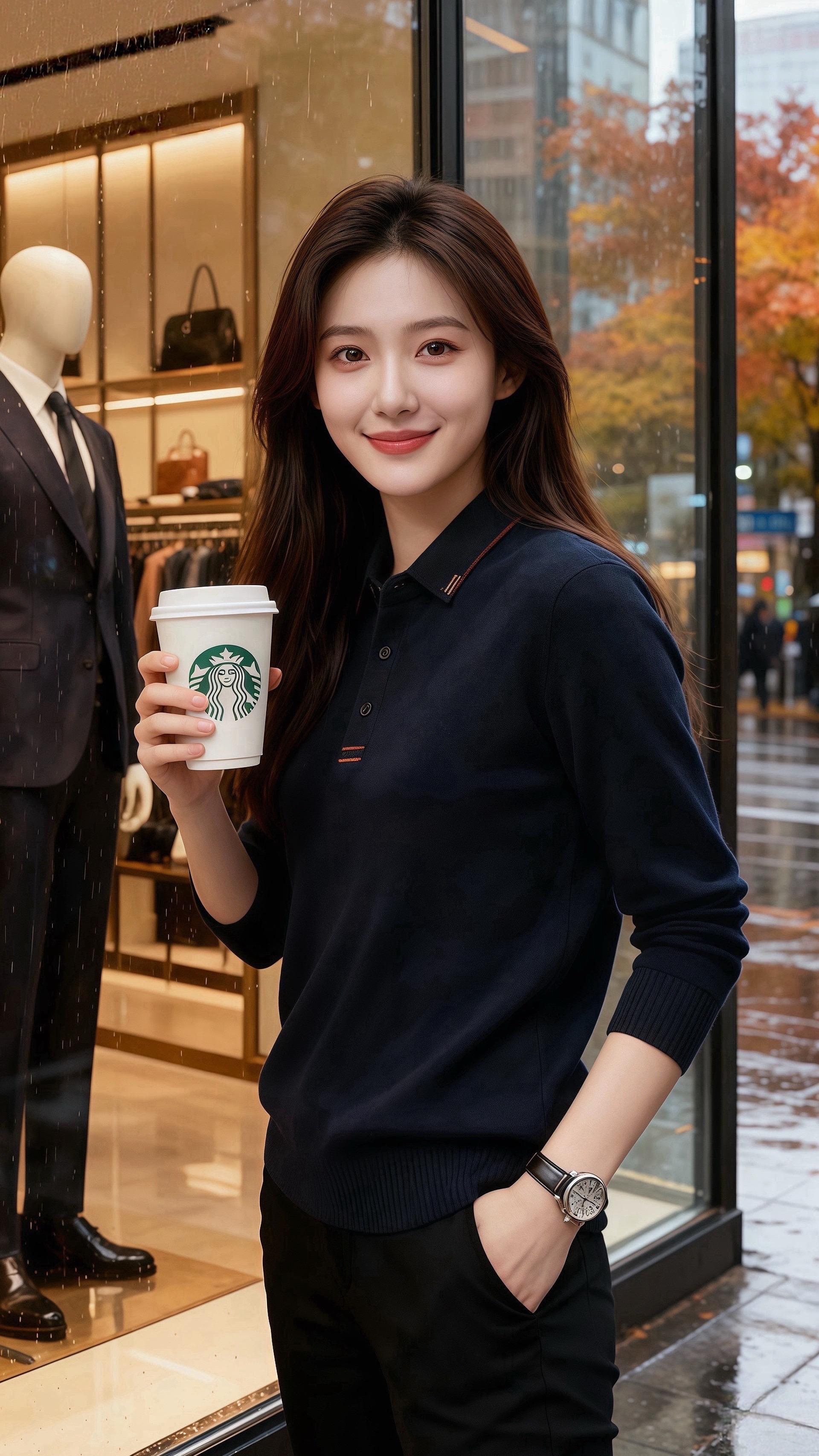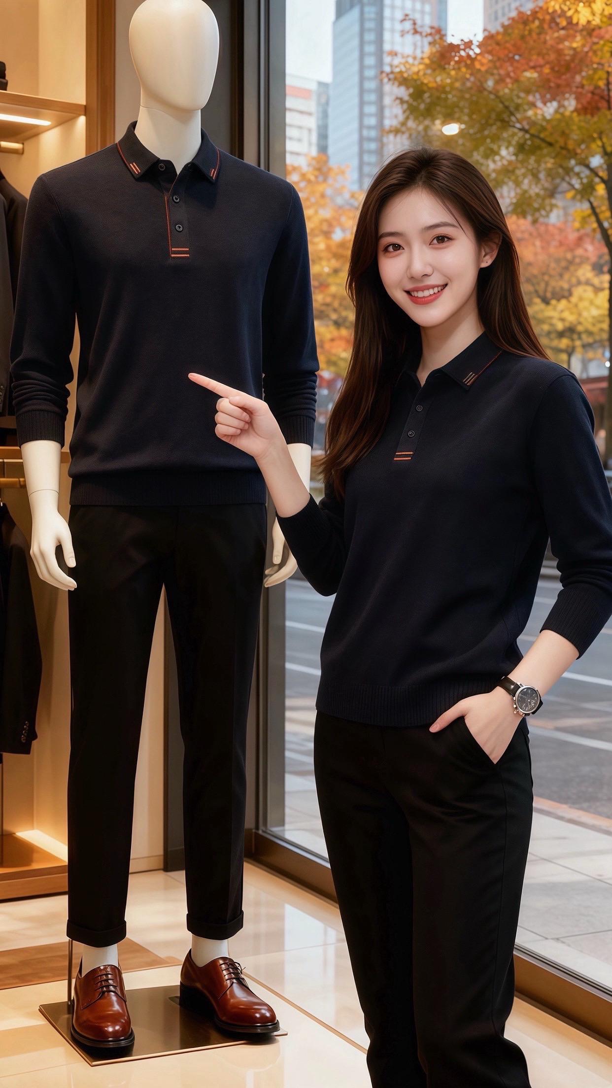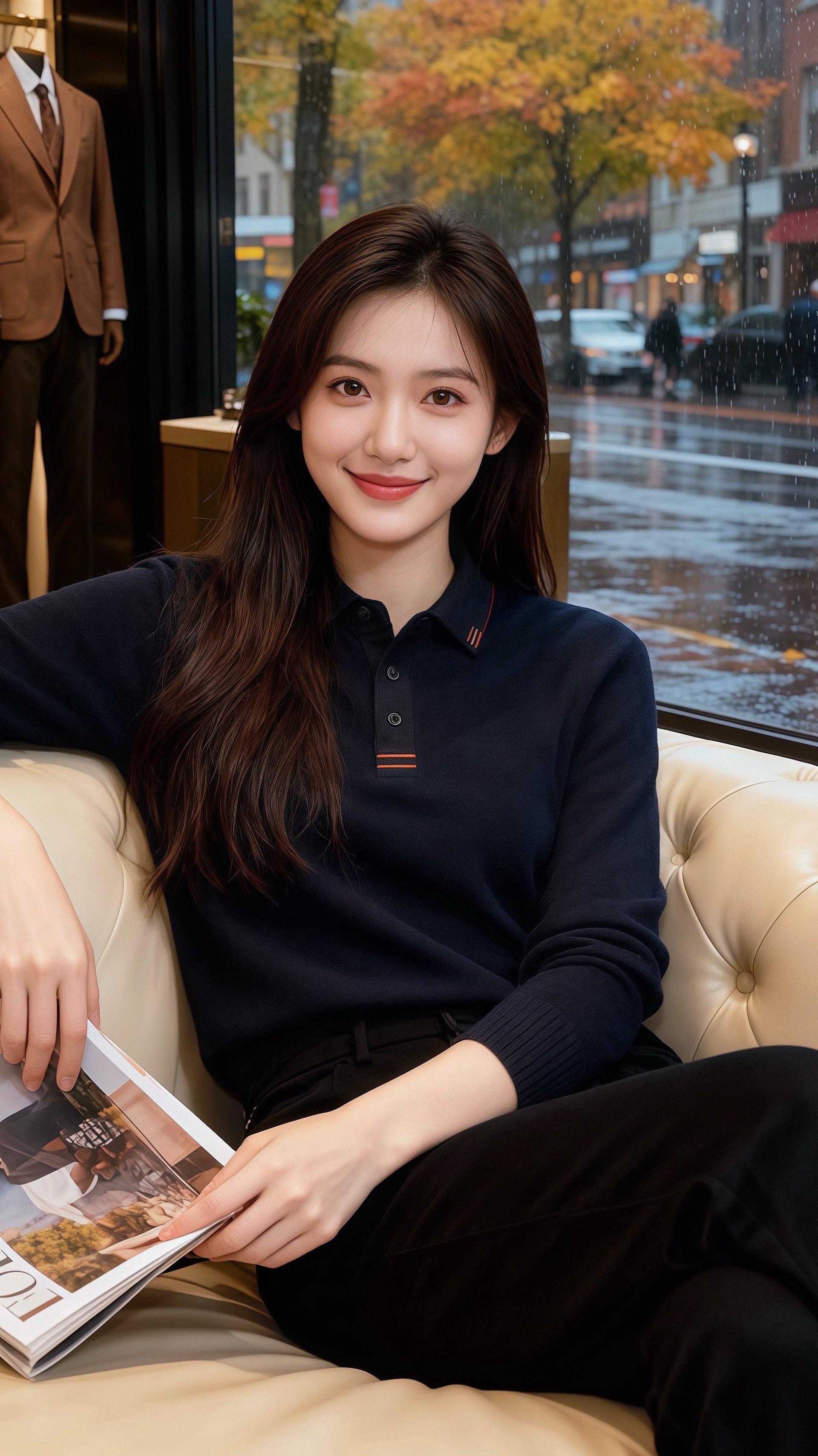 雨丝裹着梧桐叶贴在橱窗上时,姜晚正坐在男装店的沙发里翻杂志。她身上那件藏青Polo衫,领口的细条纹衬得脖颈线条很柔和,针织面料贴在身上,像裹了层恰好的温软。