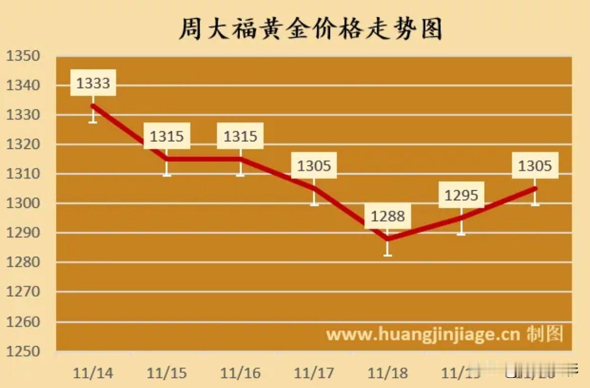 最新 同比于昨天黄金首饰价格有所上涨。 黄金首饰价格查询, 周大福黄金价格:1305元/克, 六福珠宝黄金价格:1303元/克, 周生生黄金价格:1307元/克, 老凤祥黄金价格:1302元/克, 菜百首饰黄金价格:1272元/克。 同比于昨天周大福黄金价格上涨了10元,周生生黄金价格上涨11元,菜百首饰黄金价格涨12元。 所有信息都只是提供参考,还有各个门店可能价格都有所不同,实际按结算为实。 购买黄金有风险,请保持理性购买! 黄金售卖价格 黄金价 黄金一克720 黄金售卖价格 黄金价 黄金一克720 足金金饰价格 黄金金店价格 金饰价 广东黄金价格