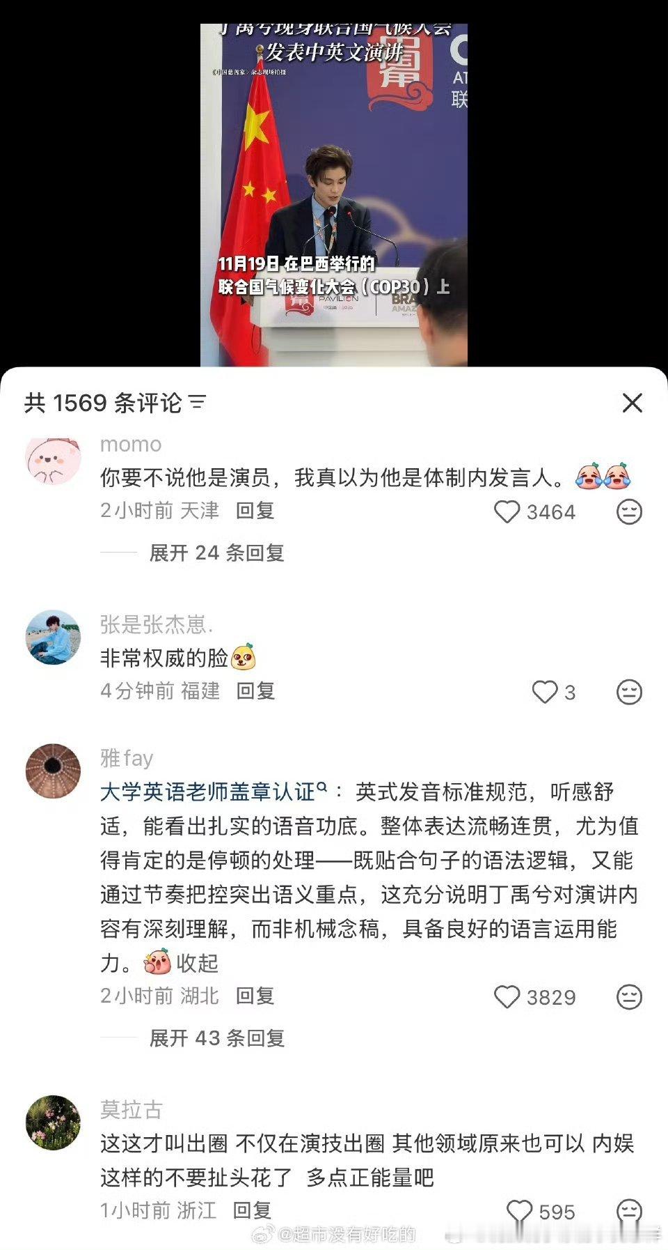 丁禹兮第一次去联合国气候大会就出圈了!英文发音标准被专业认证!