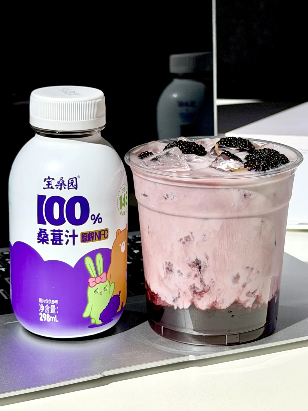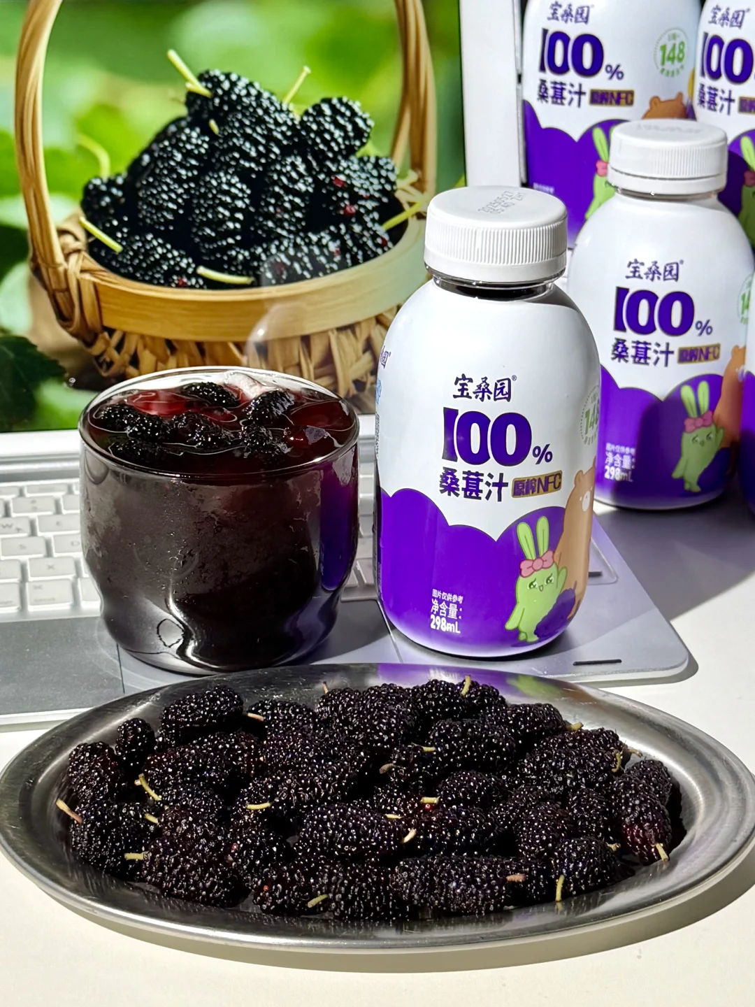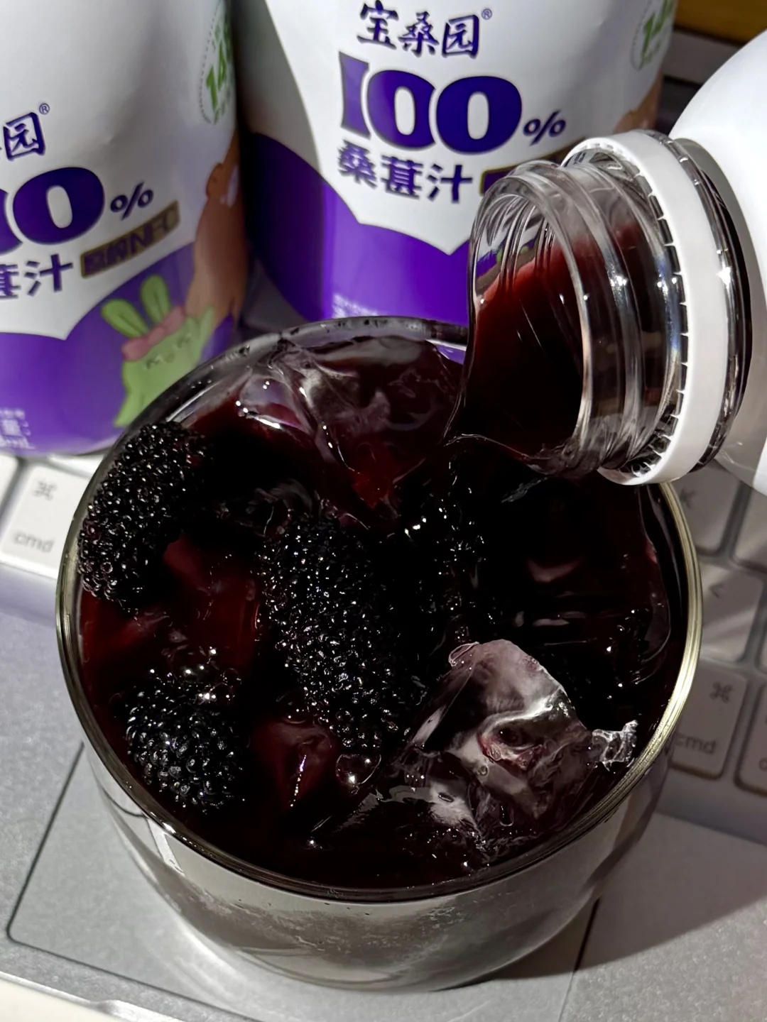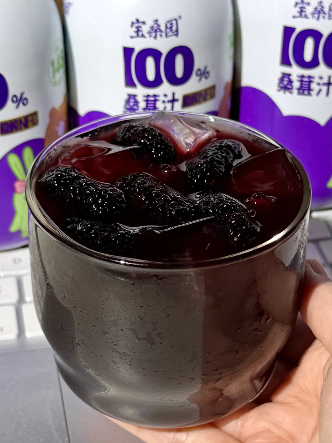 只有喝过才懂这瓶100%桑葚汁的含金量!!! 不愧是农科院出品!!配料表只有纯纯纯桑葚汁! 不加糖不加水,是实打实的100%NFC原榨!! 喝起来像无数颗新鲜桑葚在嘴里爆开,果味巨浓郁!爆汁感十足!!酸酸甜甜的,很清爽!! 一瓶桑葚汁≈148颗桑葚!!VC和花青素爆炸💥 爱熬夜的姐妹都去喝!!对👀很友好!! 还可以自己diy桑葚冰奶!!巨好喝!!奶茶店也赚不到我钱钱了!! 建议女孩子都去试试宝桑园桑葚汁!!