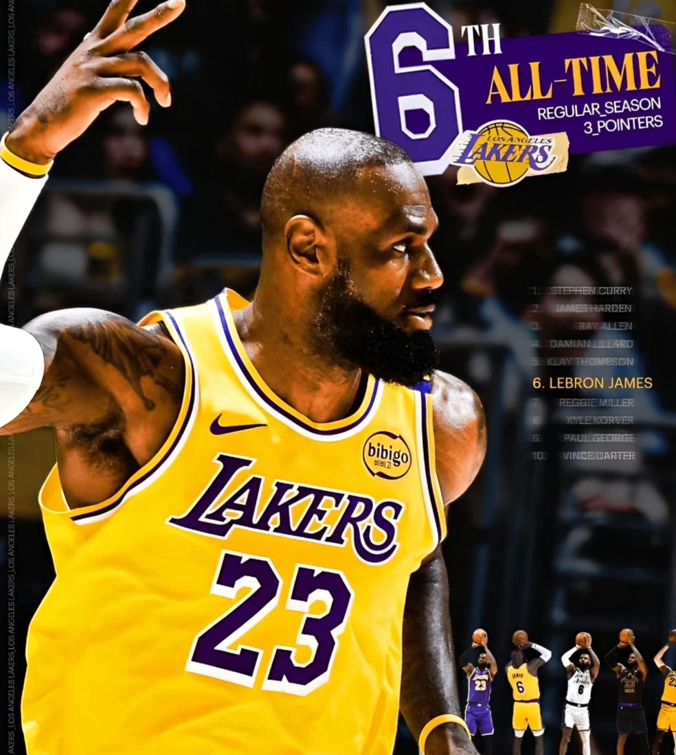詹姆斯技术能力里面最弱的是三分球,但也是历史第六! 在昨日湖人主场力克爵士的比赛中,詹姆斯的第23季揭幕战中又创造了一个里程碑,就是三分球命中数超越雷吉米勒来到历史第六位!詹姆斯曾不止一次表示,三分球一直是自己所有技术里面最薄弱的一环。 然而就是这最薄弱的一环也能位居历史第六了,詹姆斯收割纪录的能力真是绝无仅有。詹姆斯诠释了一个篮球六边形战士的样子,掌握所有篮球技术并且能够从一打到五。