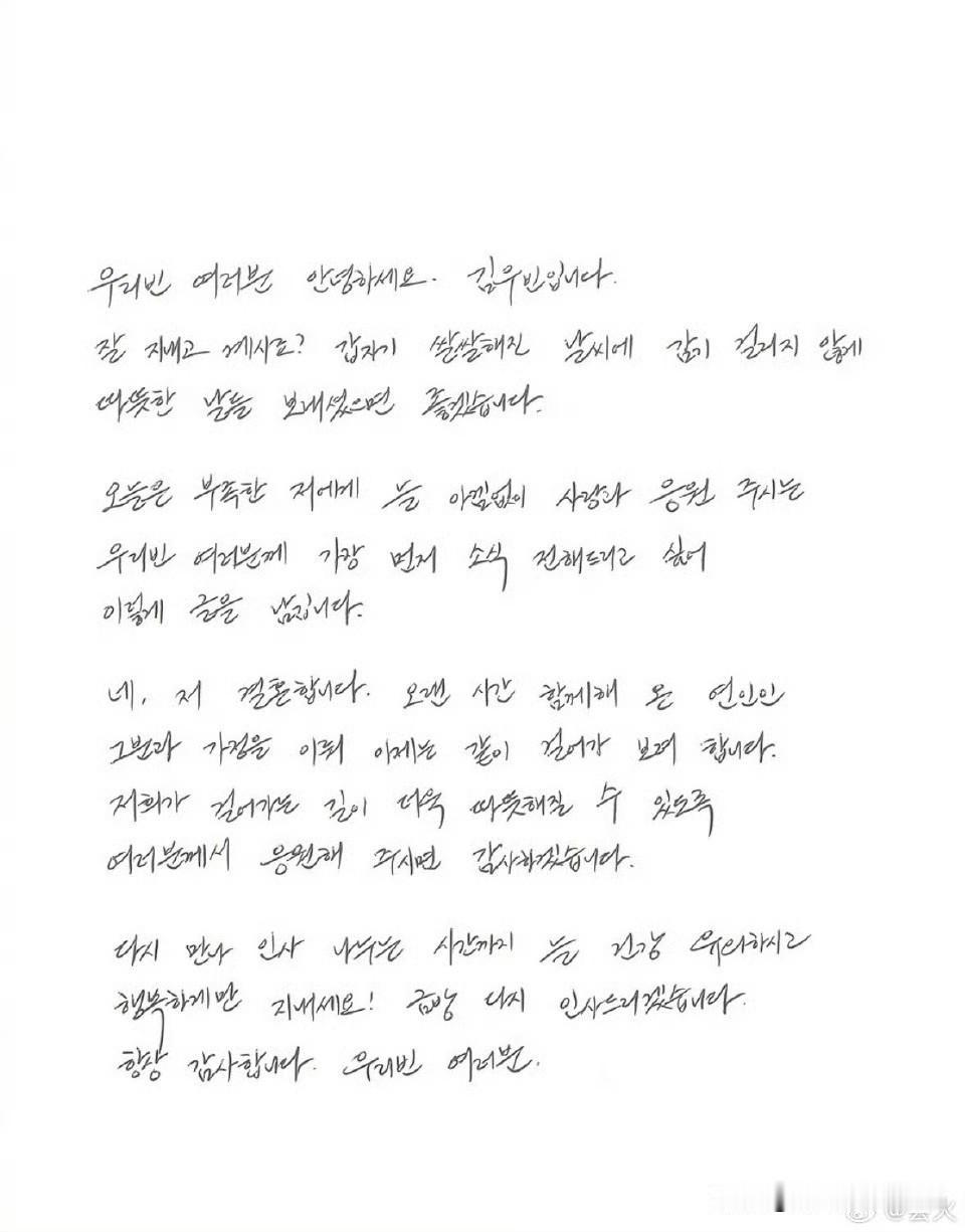 没想到韩娱还有这样的浪漫爱情,金宇彬晒手写信和申敏儿结婚 金宇彬36岁,申敏儿41岁,两个人谈恋爱10年了,也就是在金宇彬26岁的时候,申敏儿31岁的时候,两个人都是最好年纪的时候 但是好景不长,后来金宇彬被查出得了鼻咽癌,申敏儿停止工作全程陪伴,如今两个人终于修成正果了 金宇彬的手写信很浪漫:是的,我要结婚了,和一直以来在一起的那位恋人……