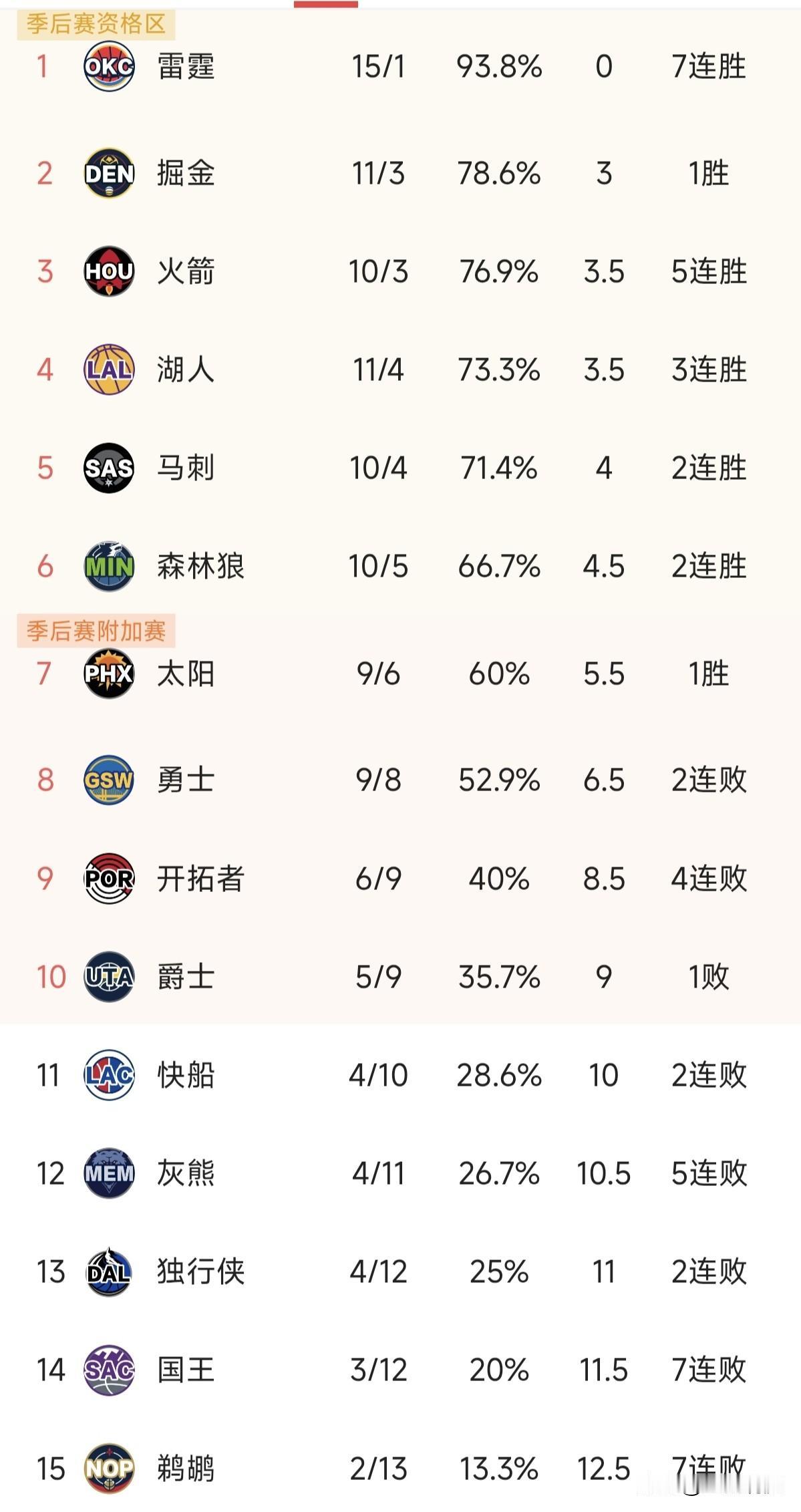 开拓者今天被绝杀了,杨瀚森拿到2分2篮板1助攻。雷霆七连胜,国王和鹈鹕都是七连败,斑马要缺席一段时间,不知道能不能影响他拿盖帽王不!感觉马刺后面可能要掉队,西部前二基本上是雷霆和掘金,只要主力球员不受伤。其他球队只能争第三了!