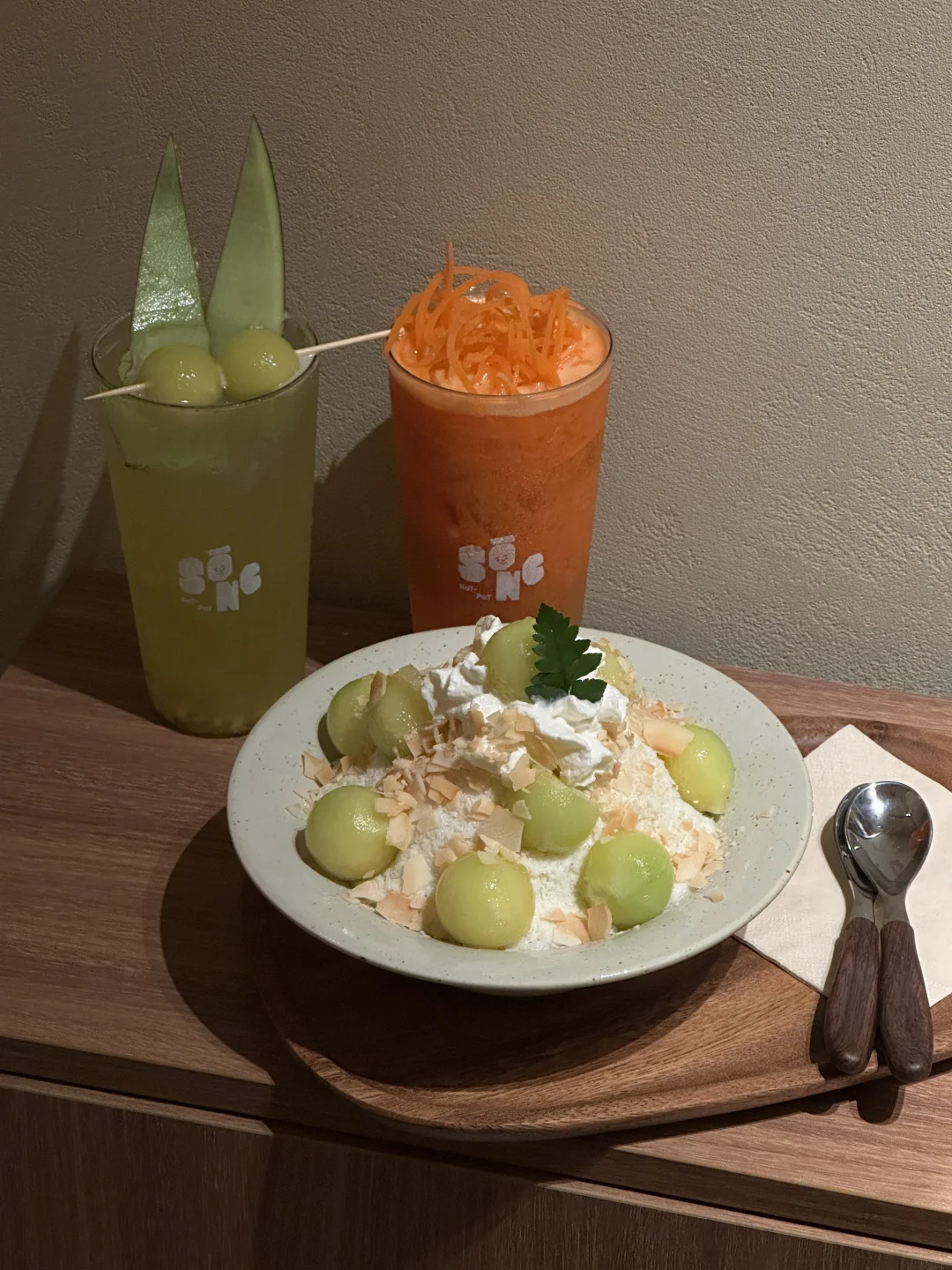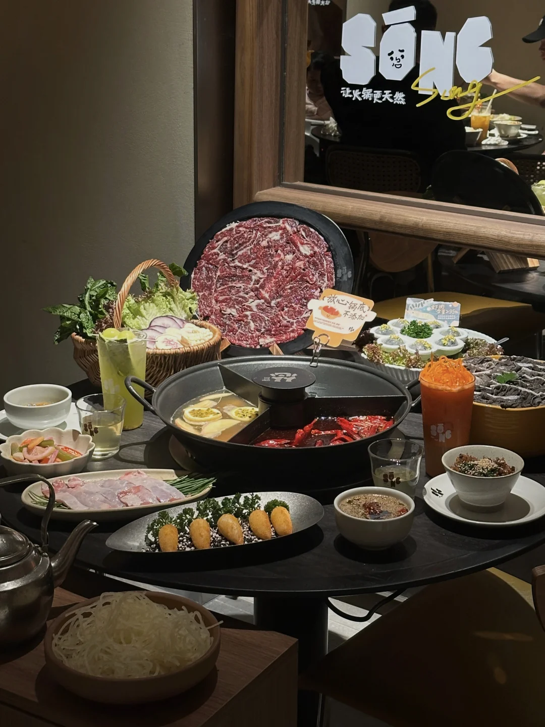 来体验新模型火锅了 环境更亲切自然 私密性也更好 入座先选茶水 冷热都有好体贴 特别嫩的招牌鲜切黄牛肉 现切的鲜肉烫10秒就够了 全是虾肉的招牌虎虾滑 吃过超弹牙的虾滑top1 漂亮冰沙&果蔬汁要吃 特别推荐 ( 𓏼˙ ᴥ ˙𓏼 ) 玫珑蜜瓜青茶冰、玫玫蜜瓜椰