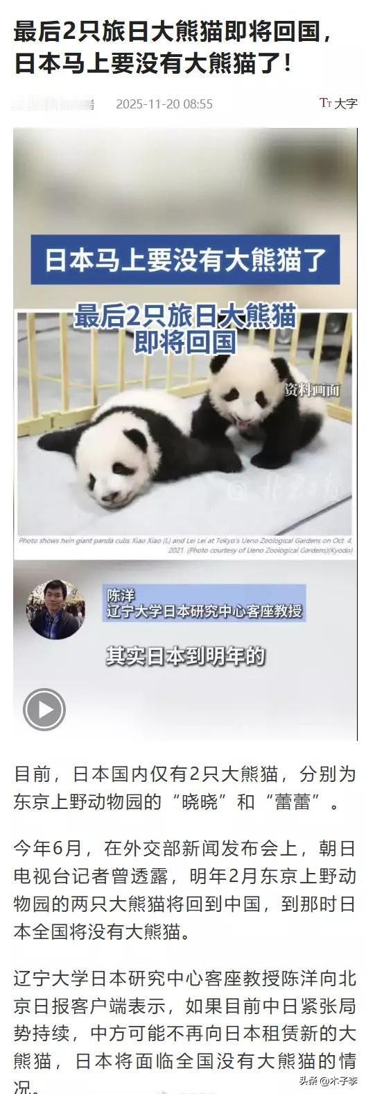 日本人确实是很喜欢大熊猫的,以前我们的大熊猫回国前,日本民众们都不惜排队好几个小时也要看熊猫,有人直接哭成泪人!以后,日本就可能没有熊猫了! 欢迎晓晓、蕾蕾回国[鼓掌][鼓掌] “晓晓”“蕾蕾”的归国,标志着长达54年的日本“熊猫时代”暂告段落 其背后既是国际合作机制的常态轮替 也折射中日关系的微妙变化[灵光一闪]大熊猫 外国大熊猫