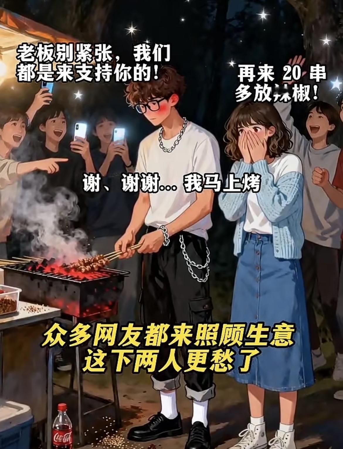 “ 老公 这么偏僻的地方 没人买烧烤了吧 ”[呲牙] “ 老婆 放心,肯定没人了 ”[送心]