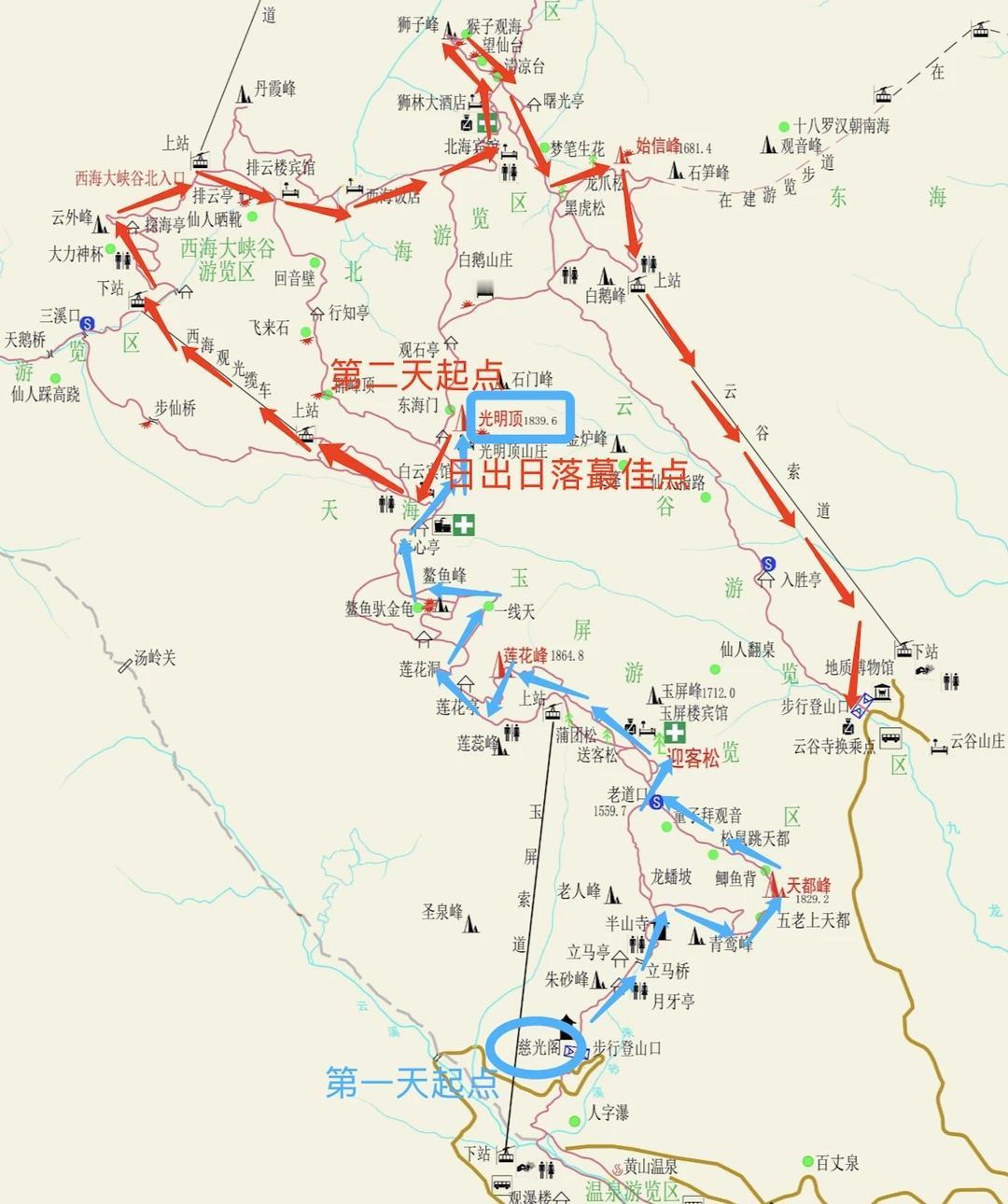 ‼️黄山景区步行时间|精确到分⏰不绕路 爬黄山最怕啥? 就是时间没算好❗️ 爬到一半天黑了🌚 索道都赶不上 · 这篇直接给大家把黄山各景点步行时间精确到分钟⌛️ 再也不怕时间不够用! ⛰️【经典路线步行时长参考】 (以下为成年人正常步行速度,不含长时间拍照停留) ✅ 前山-玉屏索道上 • 慈光阁→玉屏楼:3h(建议索道) • 玉屏楼→老道口:25min • 老道口→天都峰顶:50min • 玉屏楼→百步云梯:1h • 百步云梯→鳌鱼峰:30min • 鳌鱼峰→天海:15min • 天海→光明顶:15min ✅ 后山-云谷索道上 • 云谷寺→白鹅岭:2.5h(建议索道) • 白鹅岭→黑虎松:10min • 黑虎松→始信峰:6min • 黑虎松→梦笔生花:15min • 梦笔生花→曙光亭:10min • 曙光亭→清凉台:5min • 清凉台→狮林大酒店:5min • 狮林大酒店→团结松:15min • 团结松→排云亭:25min • 排云亭→飞来石:40min • 飞来石→光明顶:25min ✅ 西海大峡谷 • 北入口→谷底缆车下站:2h • 缆车上站→天海:3min • 谷底→三溪口:40min • 三溪口→步仙桥→天海:2.5h 🚠【一日游路线建议】 路线1⃣️:经典全景游(后山上前上下) 云谷索道上→始信峰→梦笔生花→狮子峰→团结松→排云亭→西海大峡谷北入口下→乘小火车上天海→鳌鱼峰→百步云梯→玉屏楼看迎客松→玉屏索道下 ⏰总时长:约7-8h · 路线2️⃣:前山挑战游(前山上后山下) 玉屏索道上→迎客松→百步云梯→鳌鱼峰→天海→光明顶→飞来石→排云亭→梦笔生花→始信峰→云谷索道下 ⏰总时长:约6-7h · 💡【贴心建议】 1️⃣ 上下索道省下4-5小时,把体力留给精华景点 2️⃣ 天都峰提前预约 3️⃣ 想看日出日落要在山上住一晚 4️⃣ 穿舒服的鞋!带保温杯免费接热水 5️⃣ 时间紧张就不下西海大峡谷 · 记住这个口诀: “后山秀丽前山险,索道上下省时间, 光明顶上是中心,合理规划玩得全” 赶紧点赞收藏🌟爬黄山前翻出来看! 再也不担心时间不够用啦~ 黄山 黄山旅行 黄山旅游攻略 黄山旅游 黄山旅行社 黄山攻略 黄山线路攻略 安徽省中国旅行社黄山分社 本地人做的攻略