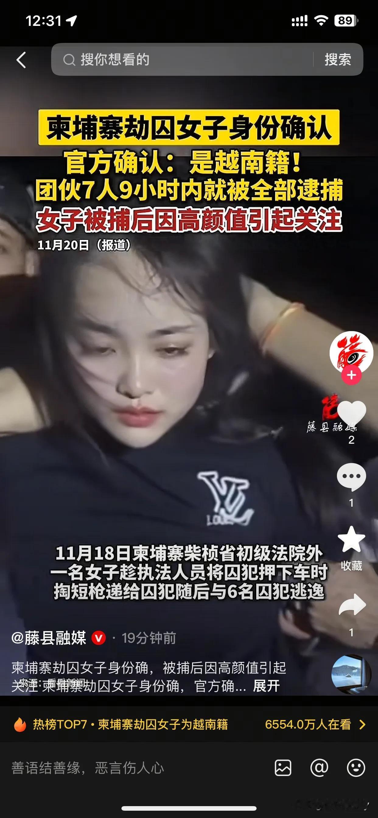 柬埔寨劫囚美女高颜值引关注 黑衣遮面,艳色藏锋。柬埔寨柴桢省法院的晨光中,一名越南籍女子的身影划破平静——她潜伏待机20分钟,趁囚车卸人之际,从腹间掏出短枪精准递出,90秒内助6名涉诈囚犯突围。 枪响混乱中,她与主犯牵手狂奔,登车绝尘的身影利落如动作片桥段。落网后,清秀颜值意外刷屏,却难掩其跨境犯罪协同者的本质。9小时追缉终落网,这场始于“高颜值”热议的劫囚案,终以法律严惩画上句点。