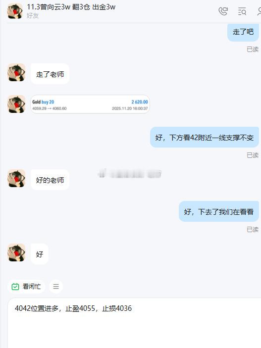 漂亮,黄金4052多单成功斩获70点收益,兄弟们注意护利