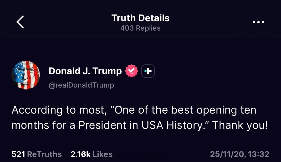 特朗普凌晨一点发文:根据多数人观点的结论,“这是美国总统历史上最出色的前十个月之一” 谢谢大家!