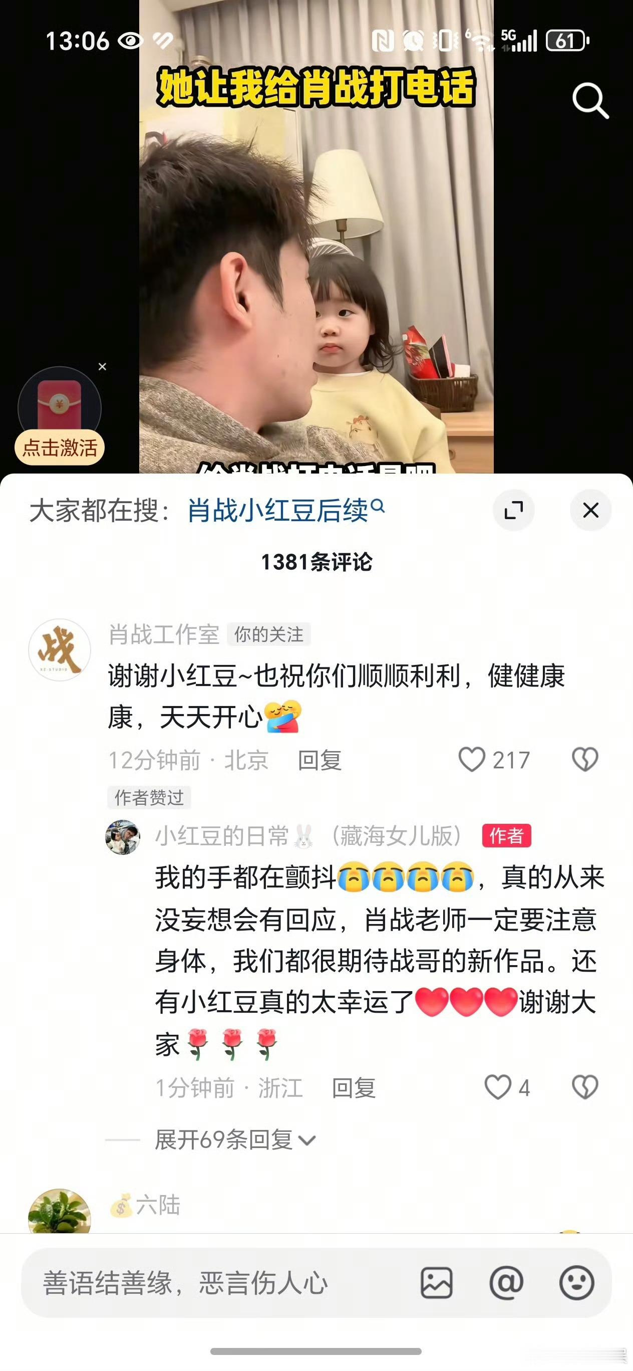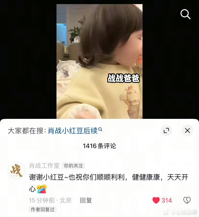 好有爱的画面谁能拒绝小萌豆啊 肖战也是女儿奴来着吧小红豆可爱 肖战工作室的回复也可爱