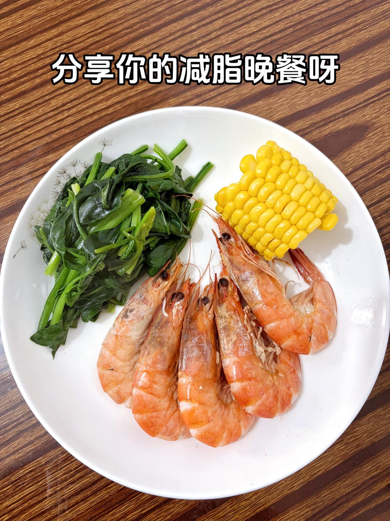 泪水打湿我的减脂餐,发誓瘦到105斤,加油 今日减脂晚餐:虾+菠菜+玉米 体重管理