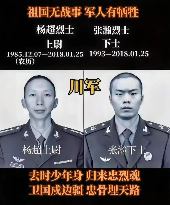2018年1月,西藏军区两个四川兵杨超和张瀚在给驻训部队送过冬物资时出意外,两人都没抢救过来。杨超是孤儿,渠县人,当时是上尉军需助理;张瀚绵阳人,下士。他们负责运送的都是帐篷、粮食这些基本物资,但那天遇上暴风雪,车子滑进冰河。 2024年1月,西藏军区某汽车运输营的荣誉室里,两张年轻的面孔在晨光中格外清晰,六年过去了每到这个时节,总有战友驱车前往川藏线G318国道K4700处,在那片曾经吞噬两个年轻生命的冰河边,献上洁白的哈达。 事情发生在2018年,西藏军区某部队野外驻训需要送过冬物资,1月19日刚从探亲假归队的杨超听说了这个任务后,他主动找到营长说道:我是军需营房助理员,应该带队前往,几乎同时21岁的张瀚也找到指导员,递上了入党申请书说道:这条路我跑了两年,每个弯道、每处暗冰我都熟悉,这次任务必须算我一个,就这样两人请缨接下了这次任务。 就在出发前一晚杨超还在和远在成都的妻子卢睿昕视频,镜头那头,两岁的儿子刚学会叫爸爸,杨超的眼神瞬间柔软下来。 杨超从小在渠县孤儿院长大的,他把全部的温柔都给了这个小家,买房时,他坚持只写妻子一个人的名字:万一我有个什么,你和孩子也有个保障。 而张瀚还未结婚,他的宿舍里一张和女朋友合影摆在床头,两个在绵阳农村一起长大的年轻人,约定等张瀚服役期满就结婚。 上次探亲张瀚悄悄给父母买了一万三千元的重疾险,却舍不得给自己添置一件新衣服,母亲心疼地说:你在那么远的地方要照顾好自己,张瀚只是笑笑:部队把我养得壮壮的,您就放心吧。 1月18日出发前,杨超仔细检查了三遍物资清单,张瀚则爬进车底检查防滑链,中午12点满载帐篷、粮食、药品的军车缓缓驶出营区,谁都没想到,这是他们最后一次穿着军装踏上征程。 下午3点15分暴风雪突然来袭能见度不足五米,张瀚握紧方向盘,小心翼翼地控制着车速,就在一个急转弯处车轮下的暗冰让车身瞬间失控。 杨哥,抓稳,这是张瀚留下的最后一句话,3点27分对讲机里传来杨超的声音:我们在K4700处遇险,请求支援,物资清单在车上,不能丢。 当西藏军区某边防团应急分队赶到时,两人已经没有了生命体征,救援官兵含泪打捞上来的物资中,大部分都还完好无损,这是两个年轻战士用生命守护的最后成果。 张瀚手机里存着连续23天在高原哨所执勤的照片,每一张都是零下二十多度的坚守记录,杨超的笔记本最后一页,工整地写着:下批物资要多带冻疮膏,去年很多战友的手都冻裂了。 部队为两位烈士追记一等功,杨超的家乡渠县设立了助学基金,每年资助贫困学生,张瀚的家乡绵阳在公路边立起纪念碑,过往的司机常常停车献花。 2020年起,西藏军区开始使用无人机运送紧急物资,但官兵们都知道,在极端天气下,仍需要有人冒着风险去完成任务。 如今新兵入伍第一课,就会听到杨超和张瀚的故事,教导员总是说:不是每个牺牲都发生在战场,但每一个默默坚守的身影,都是祖国最坚实的脊梁。 雪山无言却见证了忠诚,冰河冷峻却铭记了热血,两个四川小伙子把青春永远留在了世界屋脊,他们用最朴实的行动诠释了什么叫军人本色。 G318国道K4700处风雪依旧,但那份守护战友、服务人民的精神,已化作高原上永不熄灭的明灯。 麻烦看官老爷们右上角点击一下“关注”,既方便您进行讨论和分享,又能给您带来不一样的参与感,感谢您的支持!