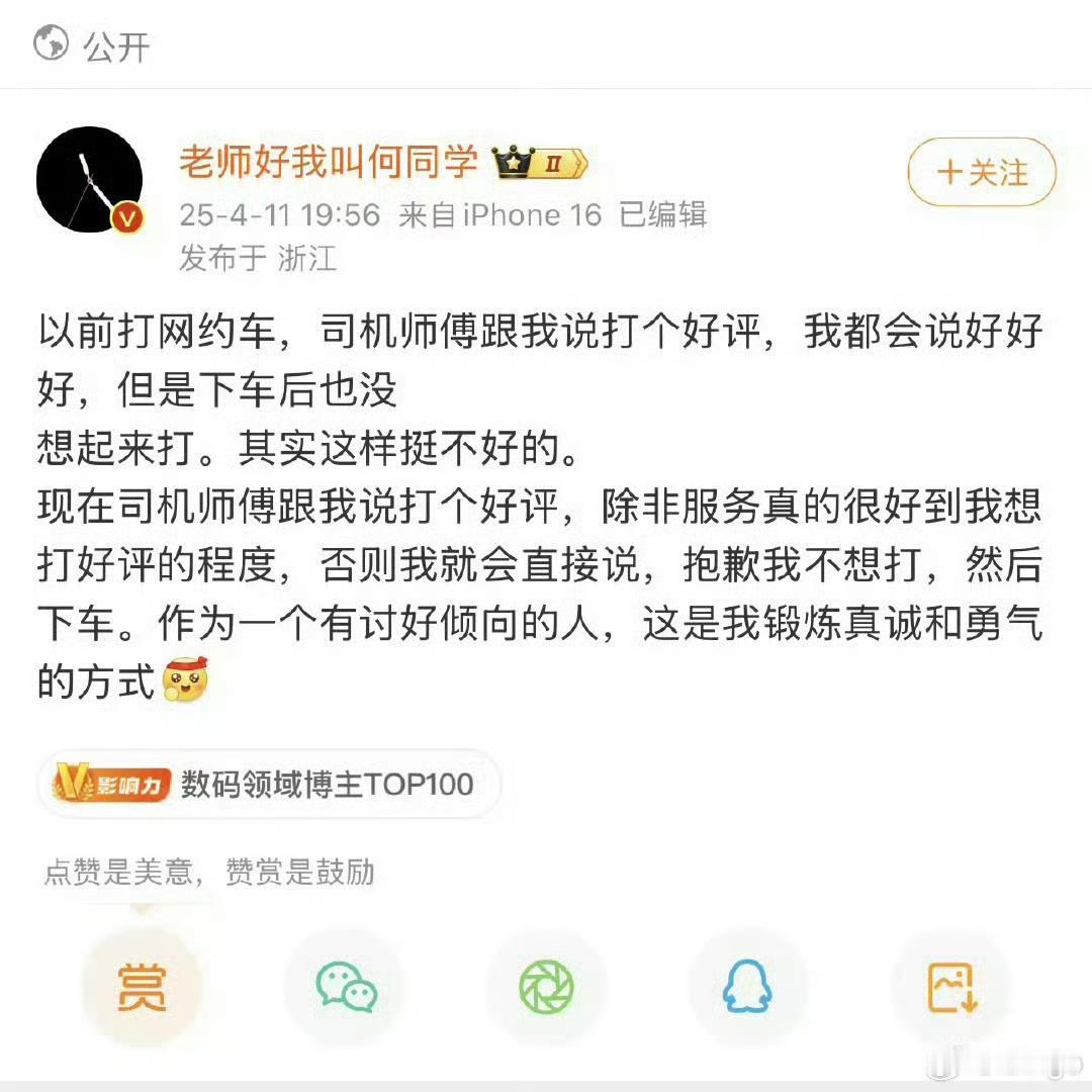 打车拒绝给好评,锻炼真诚和勇气的何同学,在亏损一两百万后,在罗永浩的访谈里给网约车致歉了。 其实何同学在外网的影响力还是可以的,越来越多百万+的正面自媒体内容出现,何同学这类号开始给老视频做英配,反向输出YT也频频爆款。 说因为这个亏损一两百万,对于何同学来说,也是小事一桩吧,几个商单就回来了。 亏损以后才知道道歉,知道谨言慎行的重要性,希望后面这种傲慢,能少一些吧。