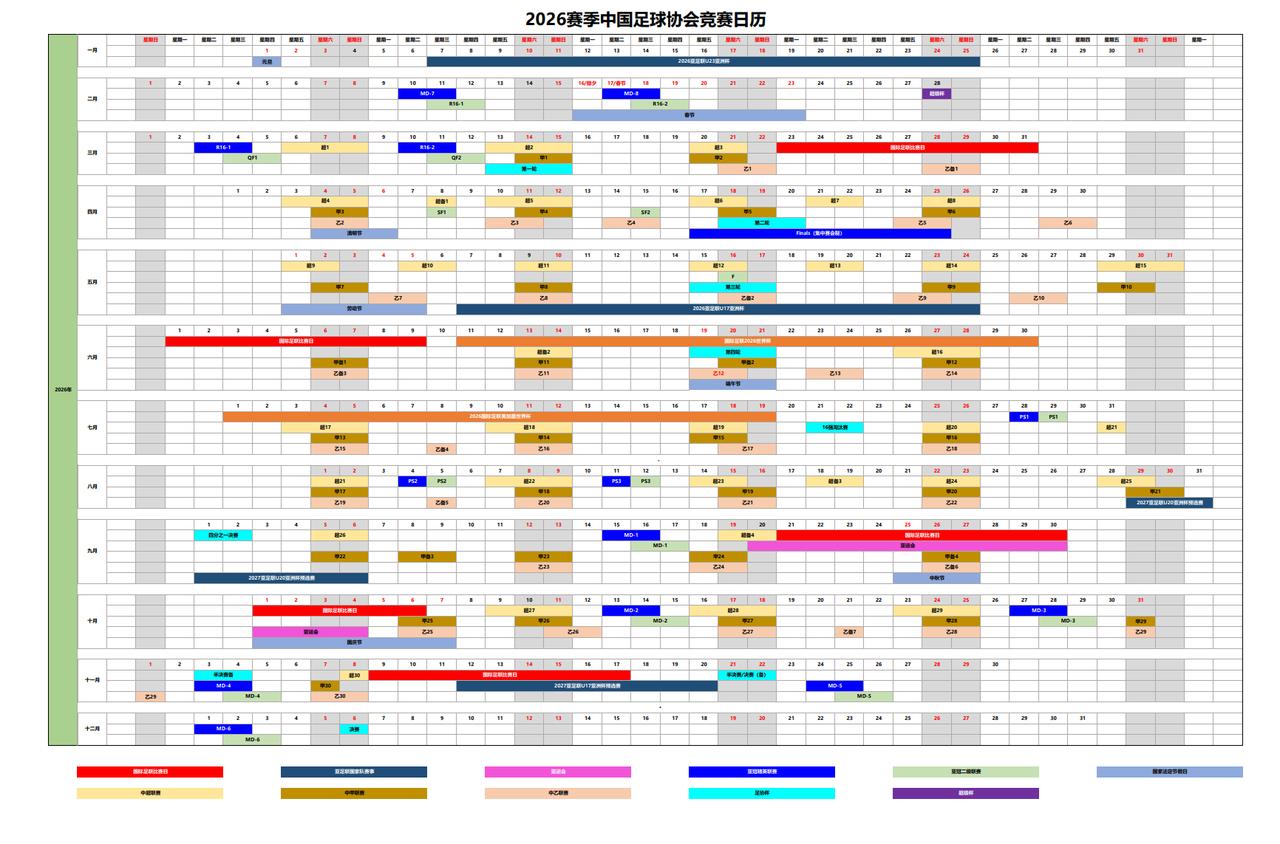 2026年的中国足球赛历来了,有中超的,也有中甲的。 2026赛季的中超,将于3月7日开打,11月8日收工。 美加墨世界杯期间照常进行,要踢5轮…… 2月28日超级杯决赛,12月6日足协杯决赛 中甲联赛于3月14日开赛,于11月7日结束,共进行30轮。 中乙联赛于3月21日开赛,于11月8日结束,共进行30轮。 新的一年,新的中超,新的山东泰山,韩鹏还会继续执教吗?山东泰山休赛期会进行哪些人员调整?又会引入哪些外援呢? 当11月22日最后一场比赛过后,一切归零,从头再来,期待山东泰山能有改变吧