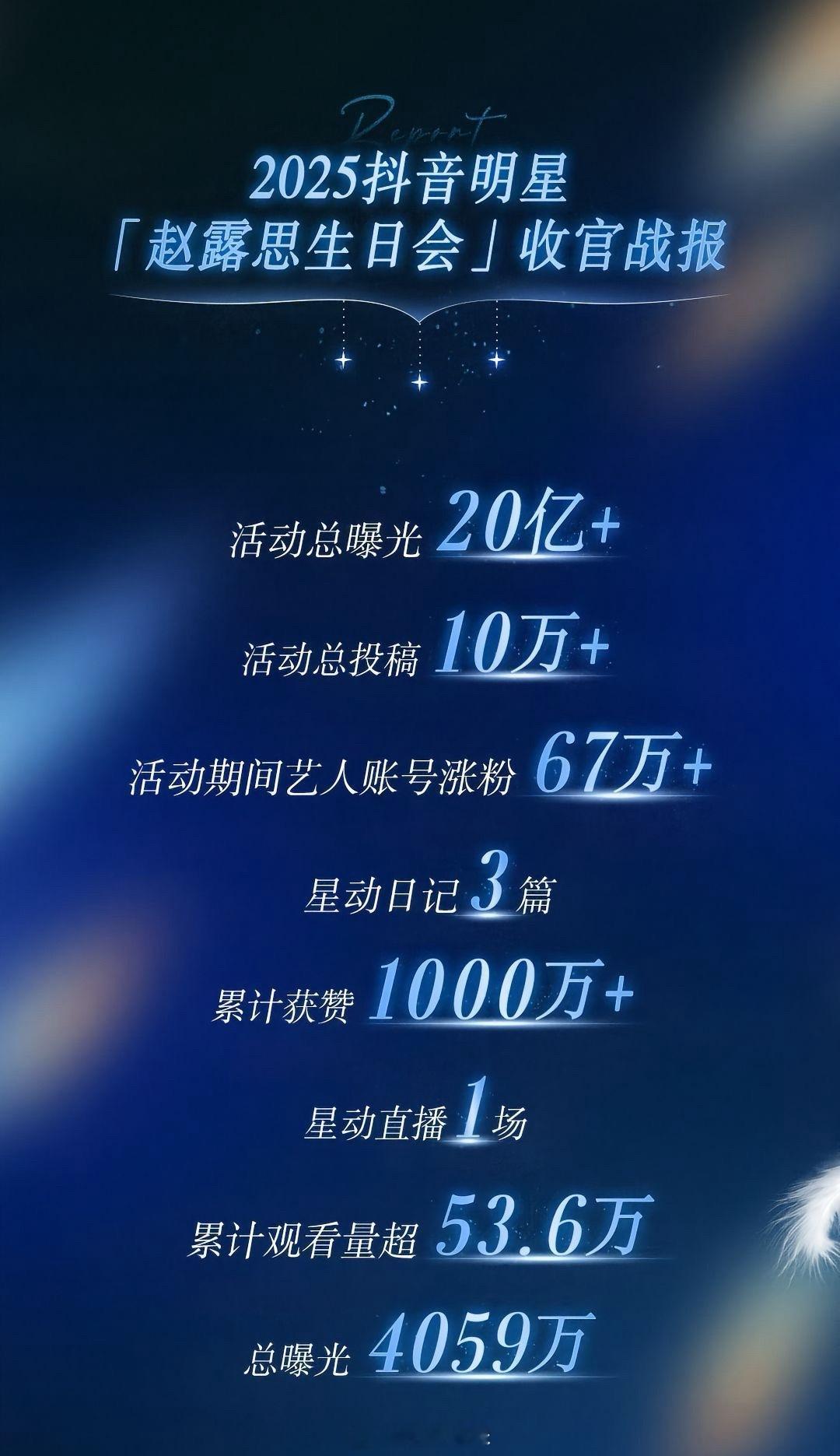 赵露思音乐会收官战报,活动总曝光20亿+,涨粉60万,累计获赞1000万+,露思全方位的出圈!